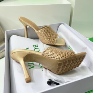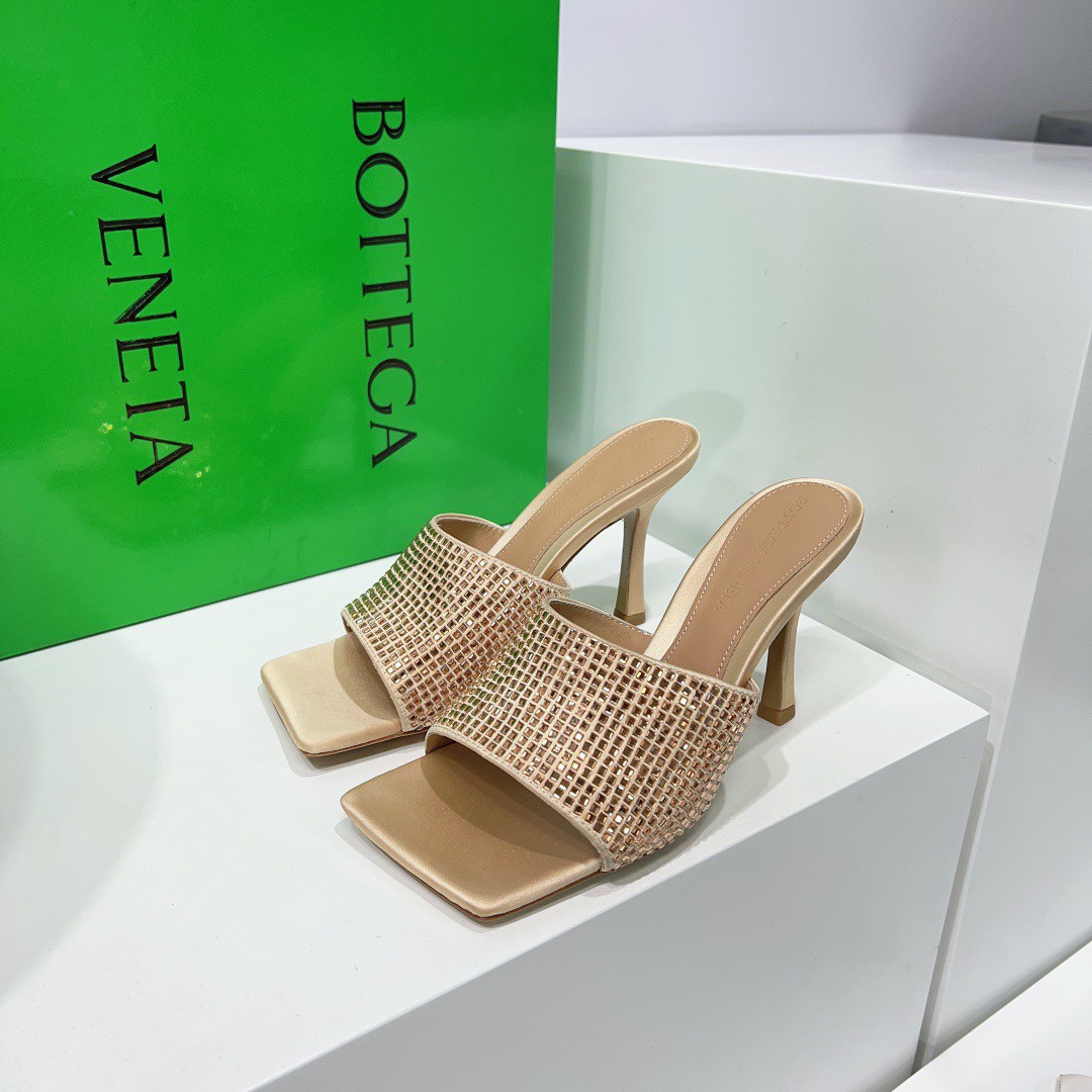 Bottega Veneta Stretch Mules 90mm In Gold Strass-embellished Satin