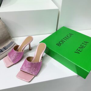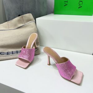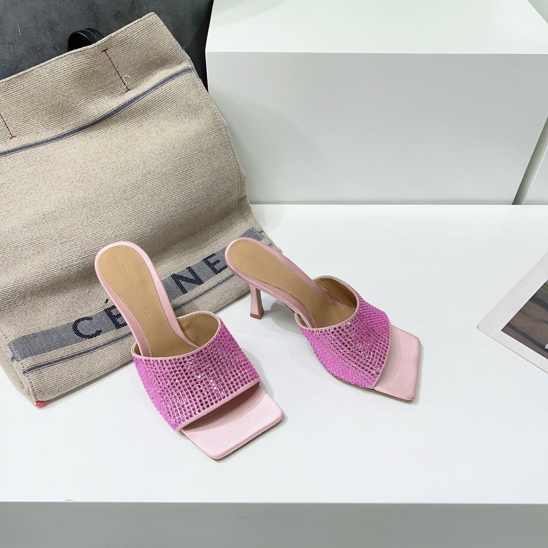 Bottega Veneta Stretch Mules 90mm In Pink Strass-embellished Satin