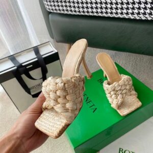 This iteration of Bottega Veneta’s signature Stretch sandals sees the house’s iconic Intrecciato weave reimagined in the form of woven-raffia straps. They have a square-toe silhouette with sculptural 90mm heels and rubber tread soles.