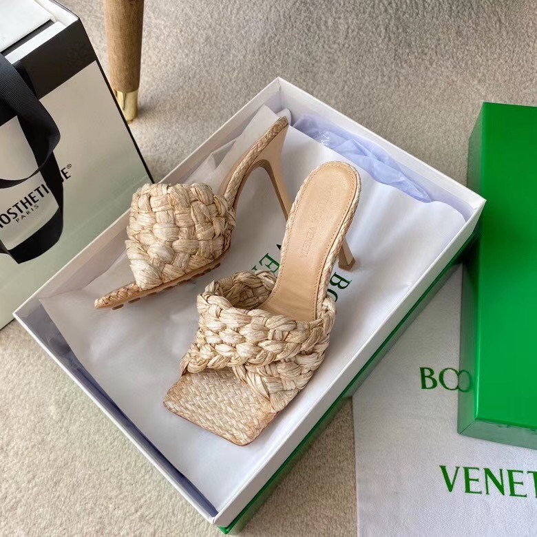 Bottega Veneta Stretch Sandals In Beige Intrecciato Raffia