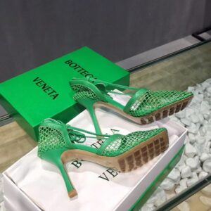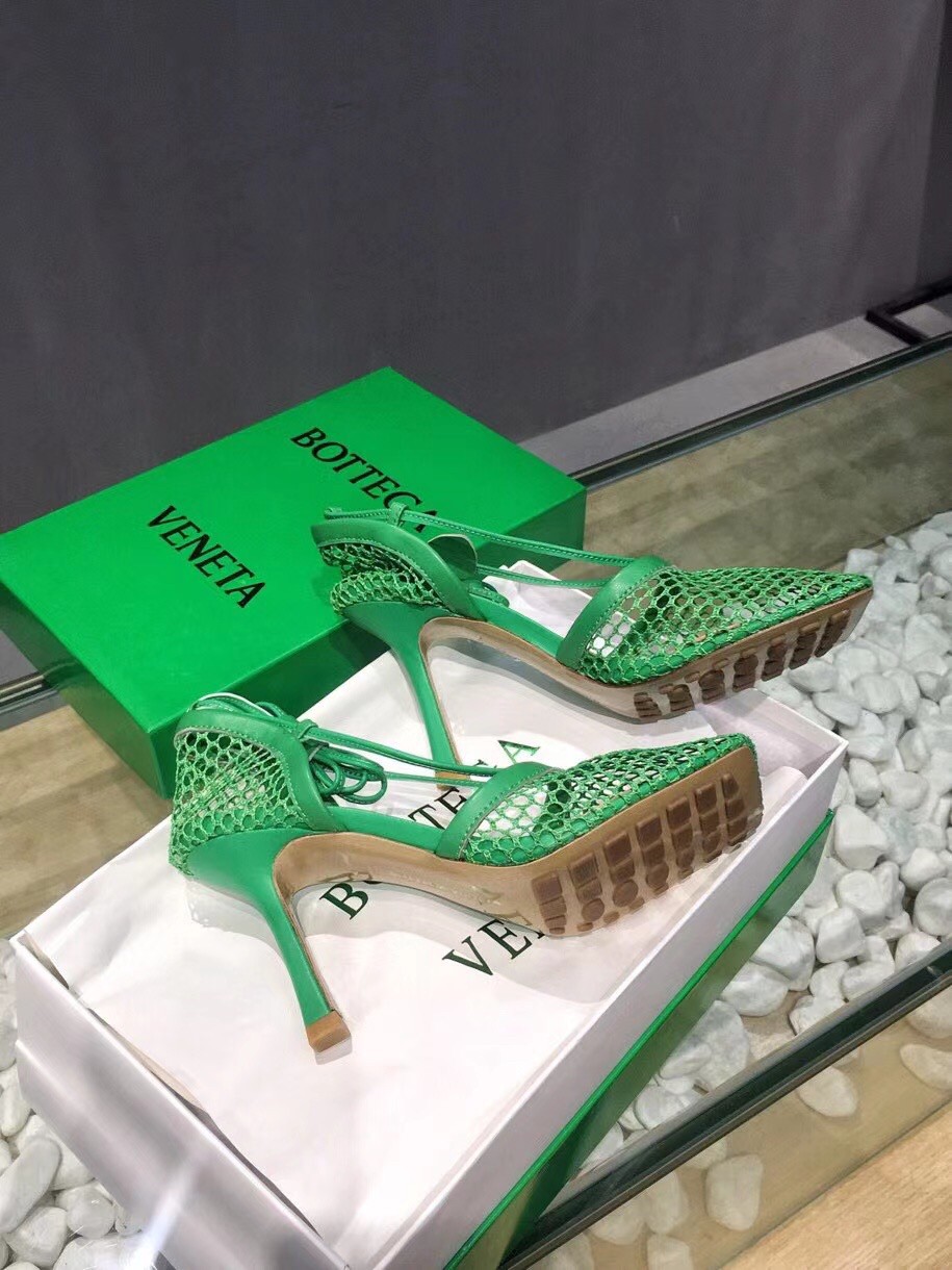 Bottega Veneta takes a unique approach to fabrication for a truly modern approach to luxury, as exemplified by the Stretch mesh sandals. Trimmed with supple leather, the design has wrap-tie ankle fastenings, tapered 90mm heels and squared toes, resulting in a directional look.