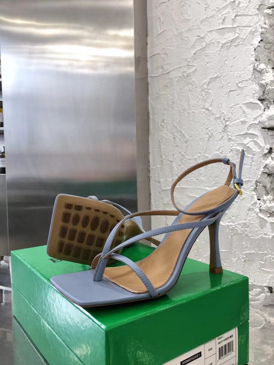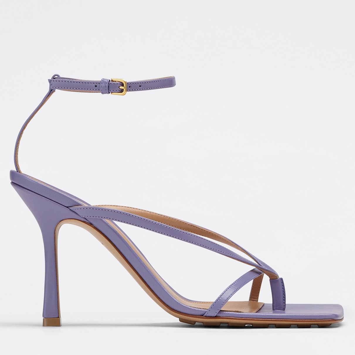 – Ankle-strap sandals with an elongated square sole