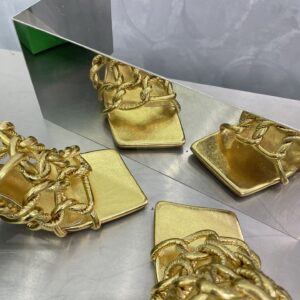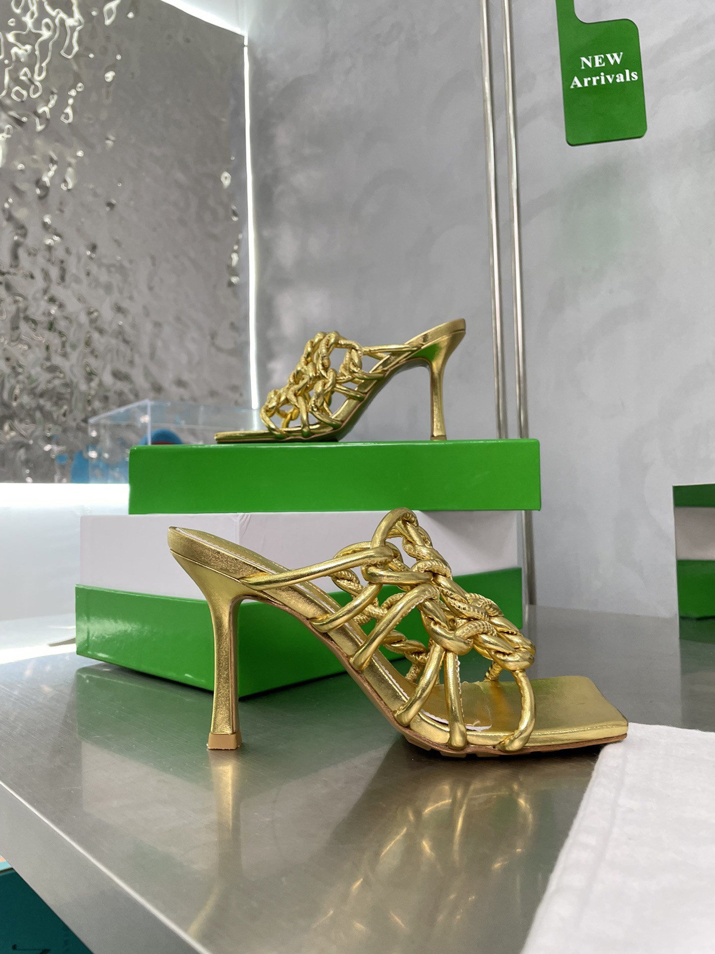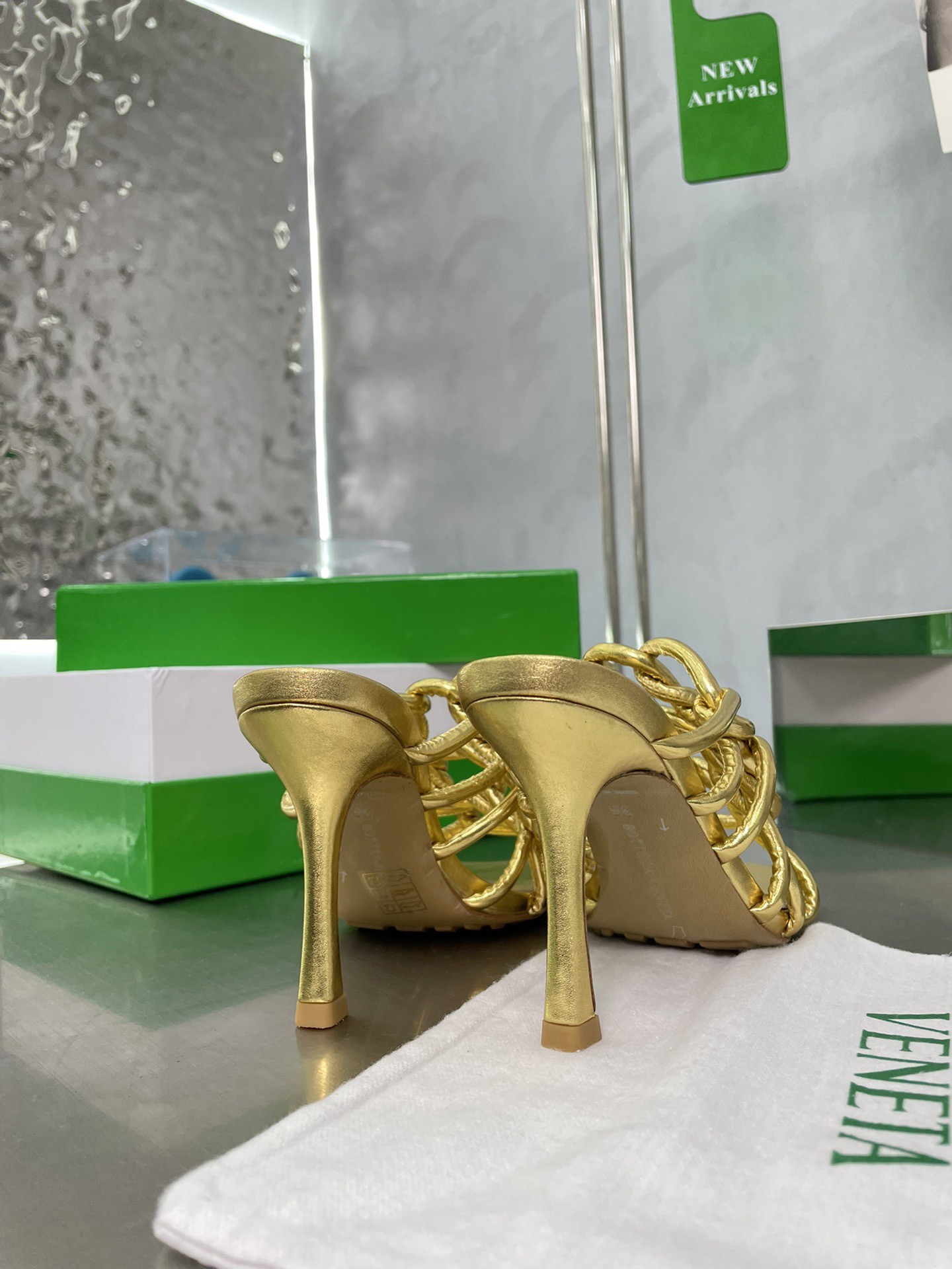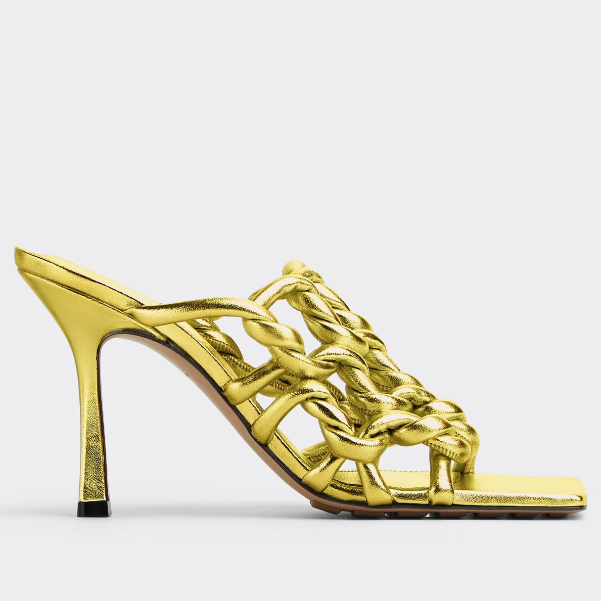 Bottega Veneta Stretch Twist Sandals In Gold Metallic Lambskin