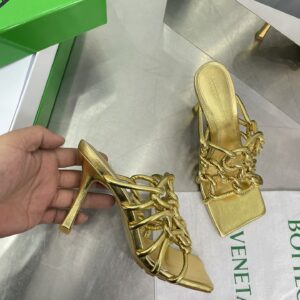 Bottega Veneta is known for its signature intrecciato technique but plays with weaving in a different way for these ‘Stretch’ mules. Designed with square toes, they’ve been made from tubes of metallic lambskin and twisted by hand to achieve the wide, lattice straps.
