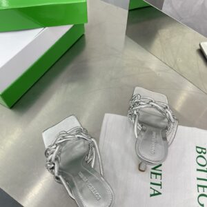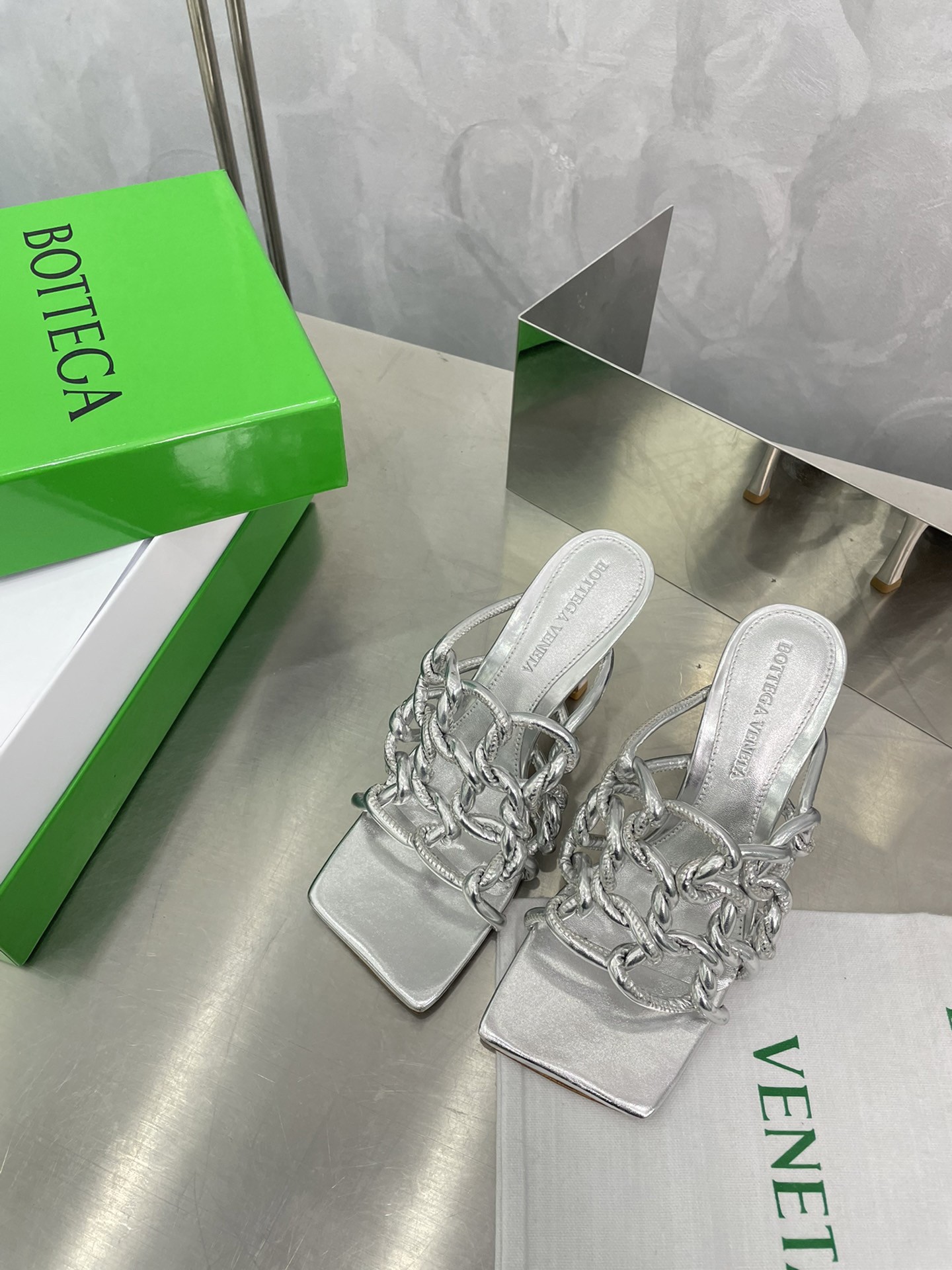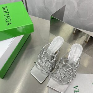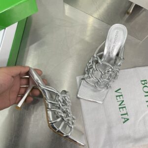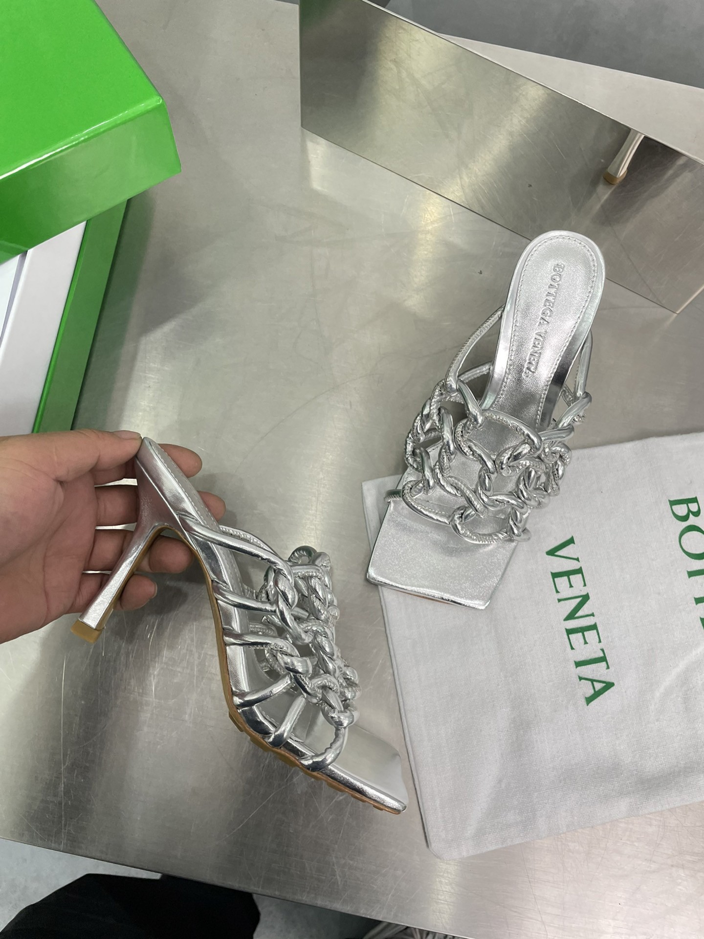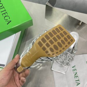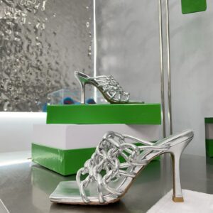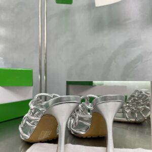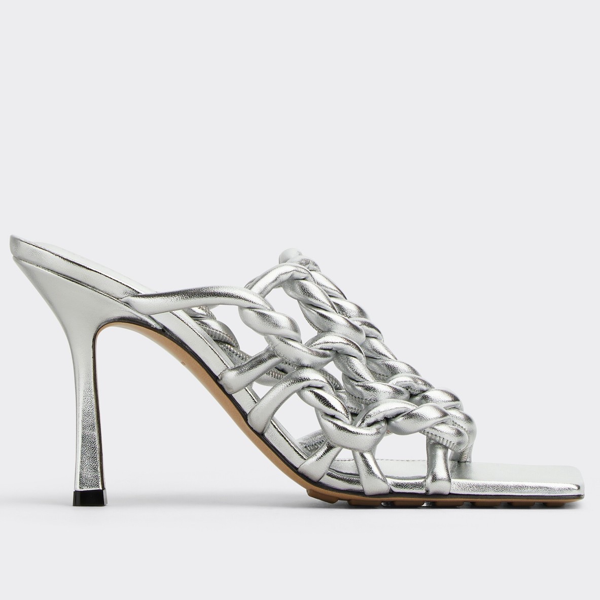 Bottega Veneta Stretch Twist Sandals In Silver Metallic Lambskin
