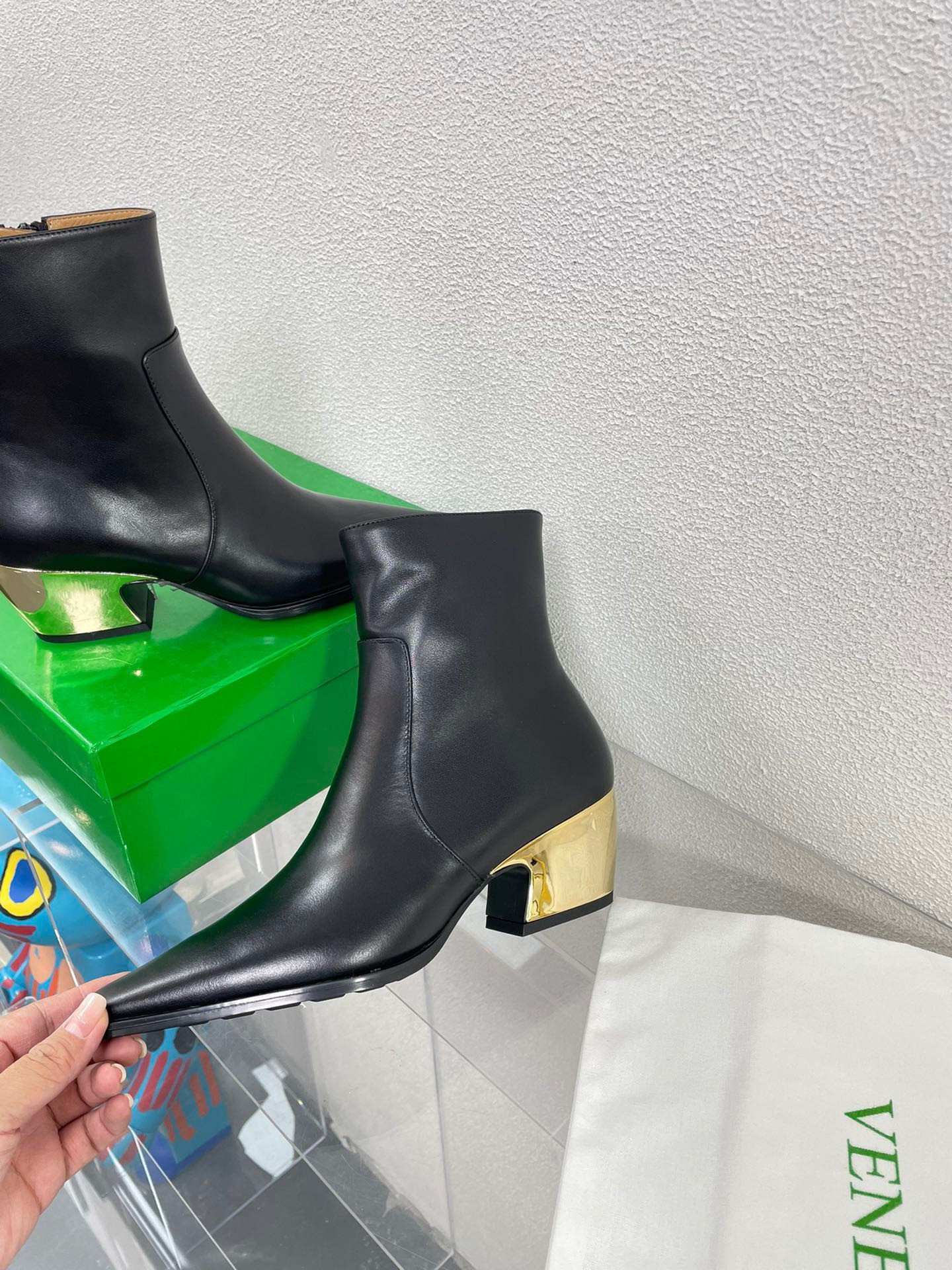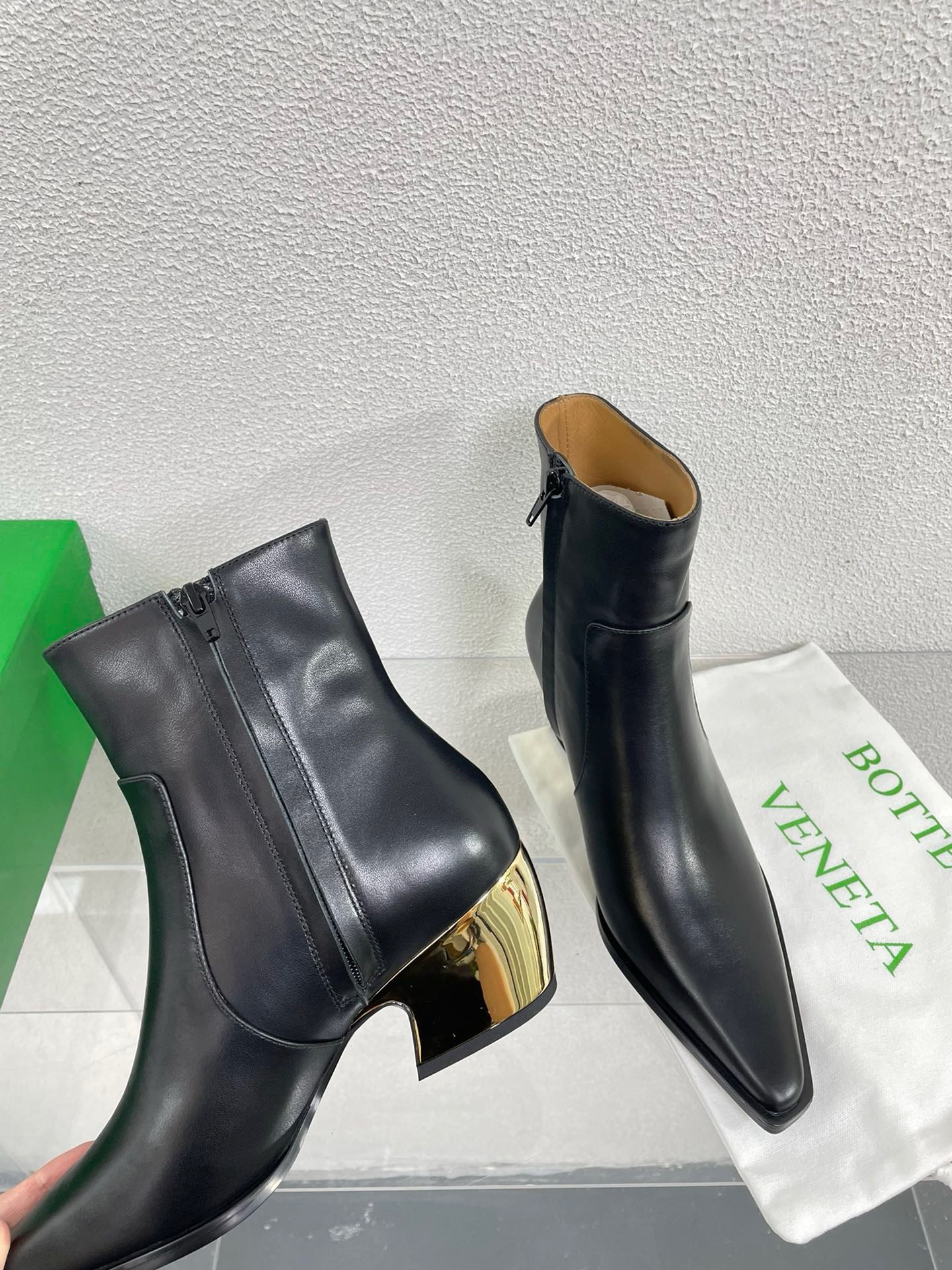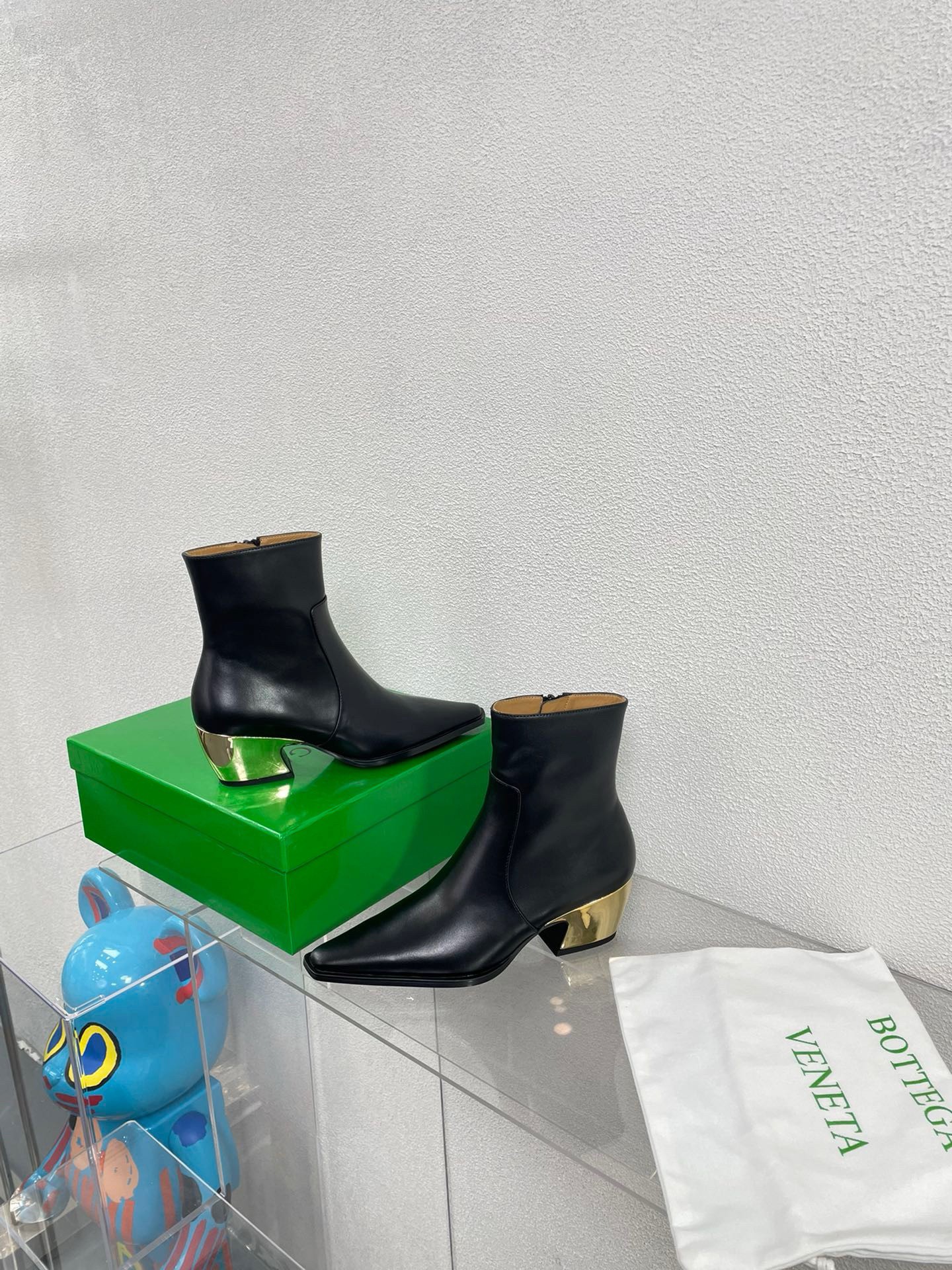 Resting on glimmering curved heels, Bottega Veneta’s Tex ankle boots feel Western in the most refined way. They’re crafted from supple leather for close fit and and have squared-off, elongated toes.