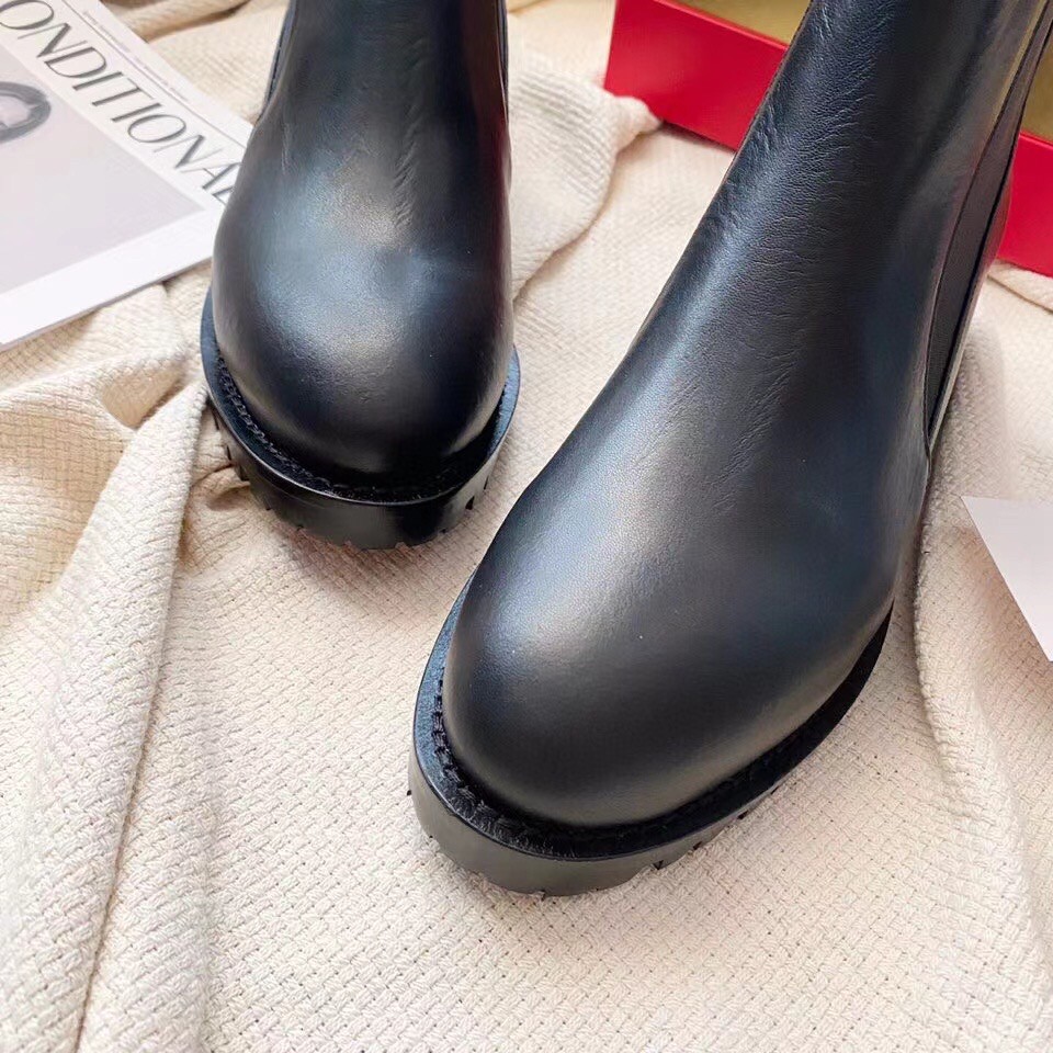 Christian Louboutin’s black calfskin Marcharoche ankle boot expertly mixes the sleek styling of the Chelsea boot silhouette with a rugged flat lug sole for a subtle nod to utility trends. With wrap-around elastic panels and a pull tab at the back, the pair slip on and off with ease.