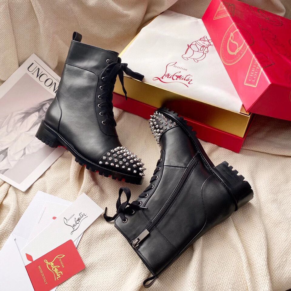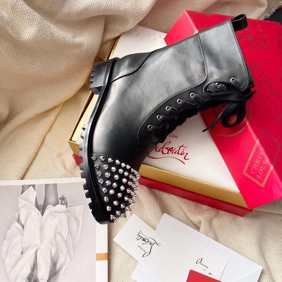Christian Louboutin aims to match his creations with the lifestyles of the women who wear his shoes – these ‘TS Croc’ boots are inspired by Taylor Swift’s on-the-road schedule. This chunky pair has been made from black leather and punctuated with silver spikes at the round toe. They have handy side zips and you can also tug the laces a touch tighter.