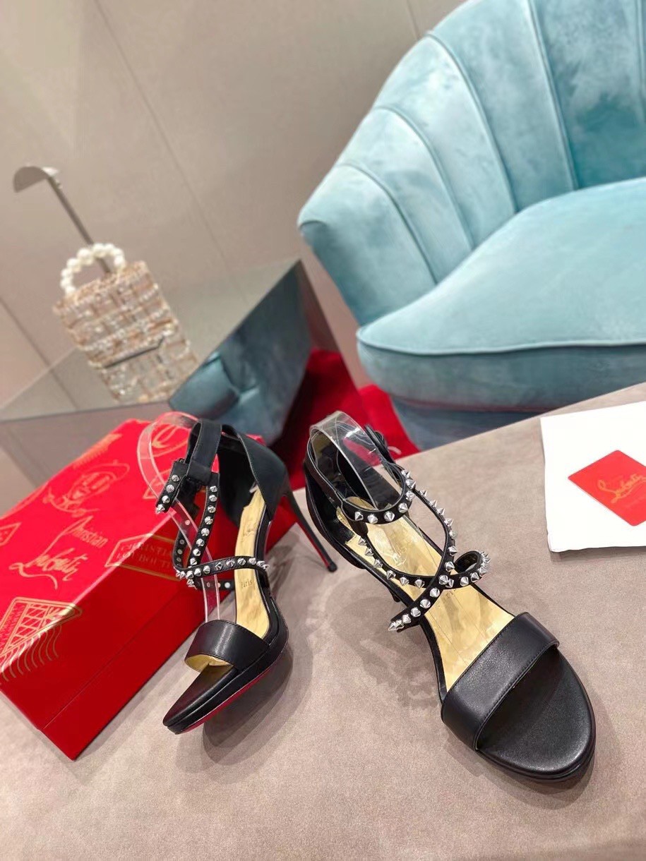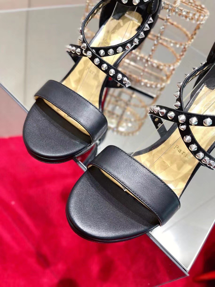 Christian Louboutin Choca Lux 100mm Sandals In Black Lambskin