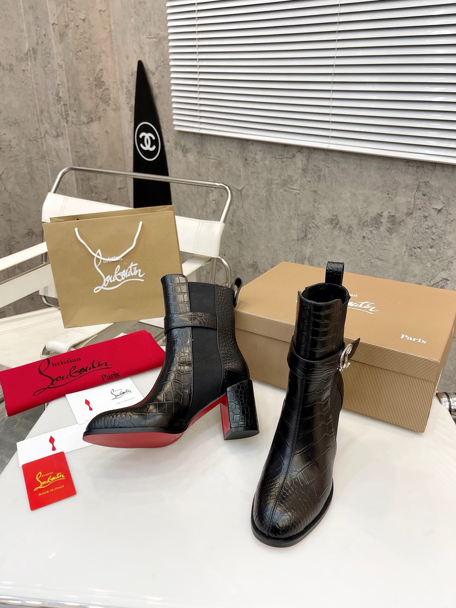 Christian Louboutin CL Chelsea Ankle Boots 70MM in Alligator Embossed Leather
