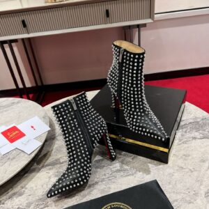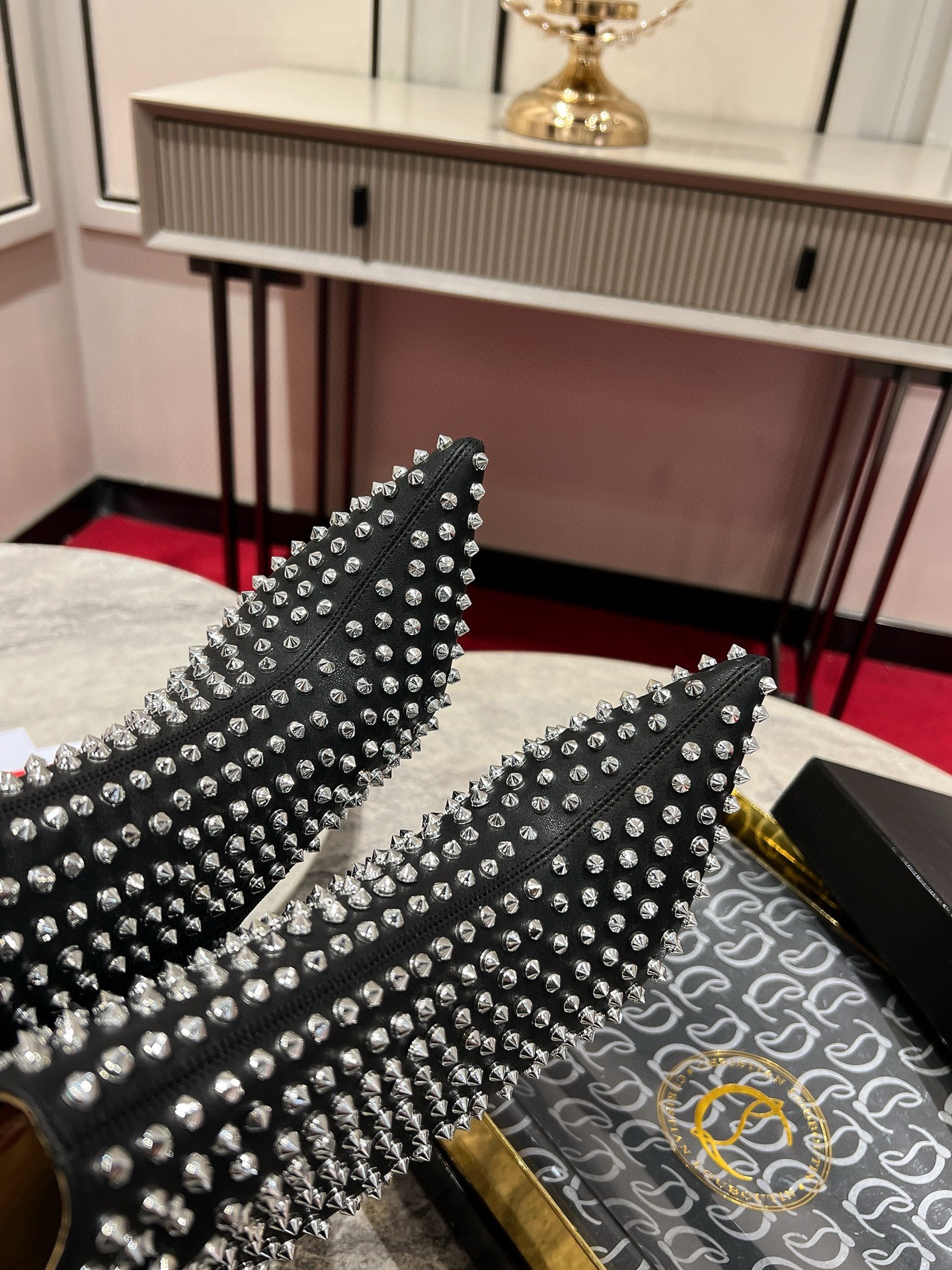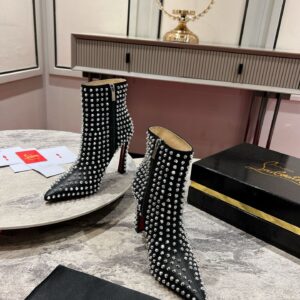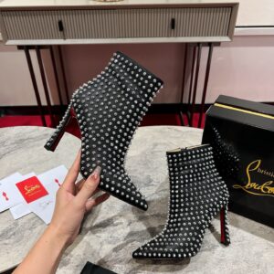 Christian Louboutin Condora Spikes 100mm Boots in Black Lambskin