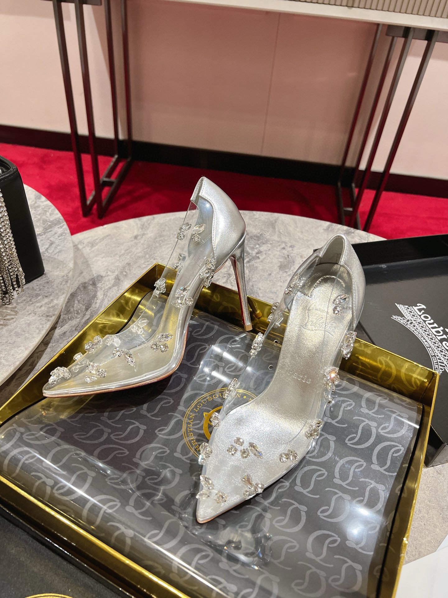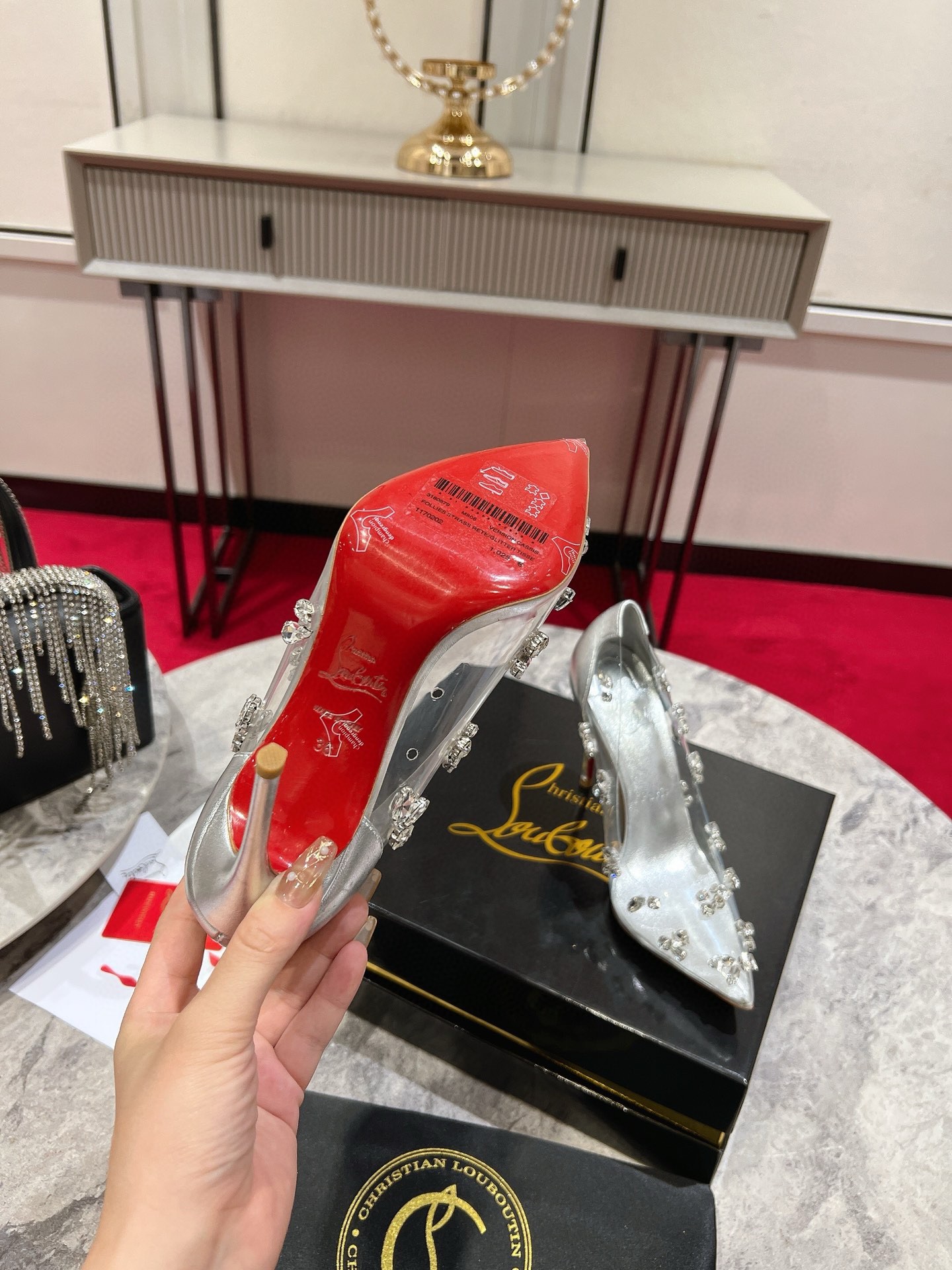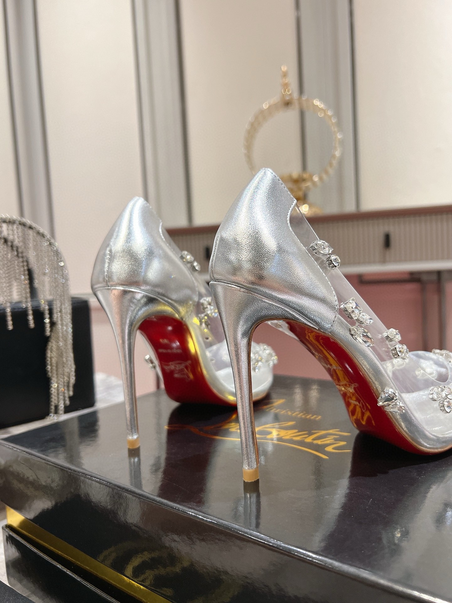 Christian Louboutin Degraqueenie 85mm Pumps in Silver Leather with Crystals