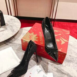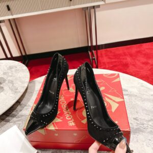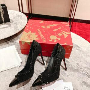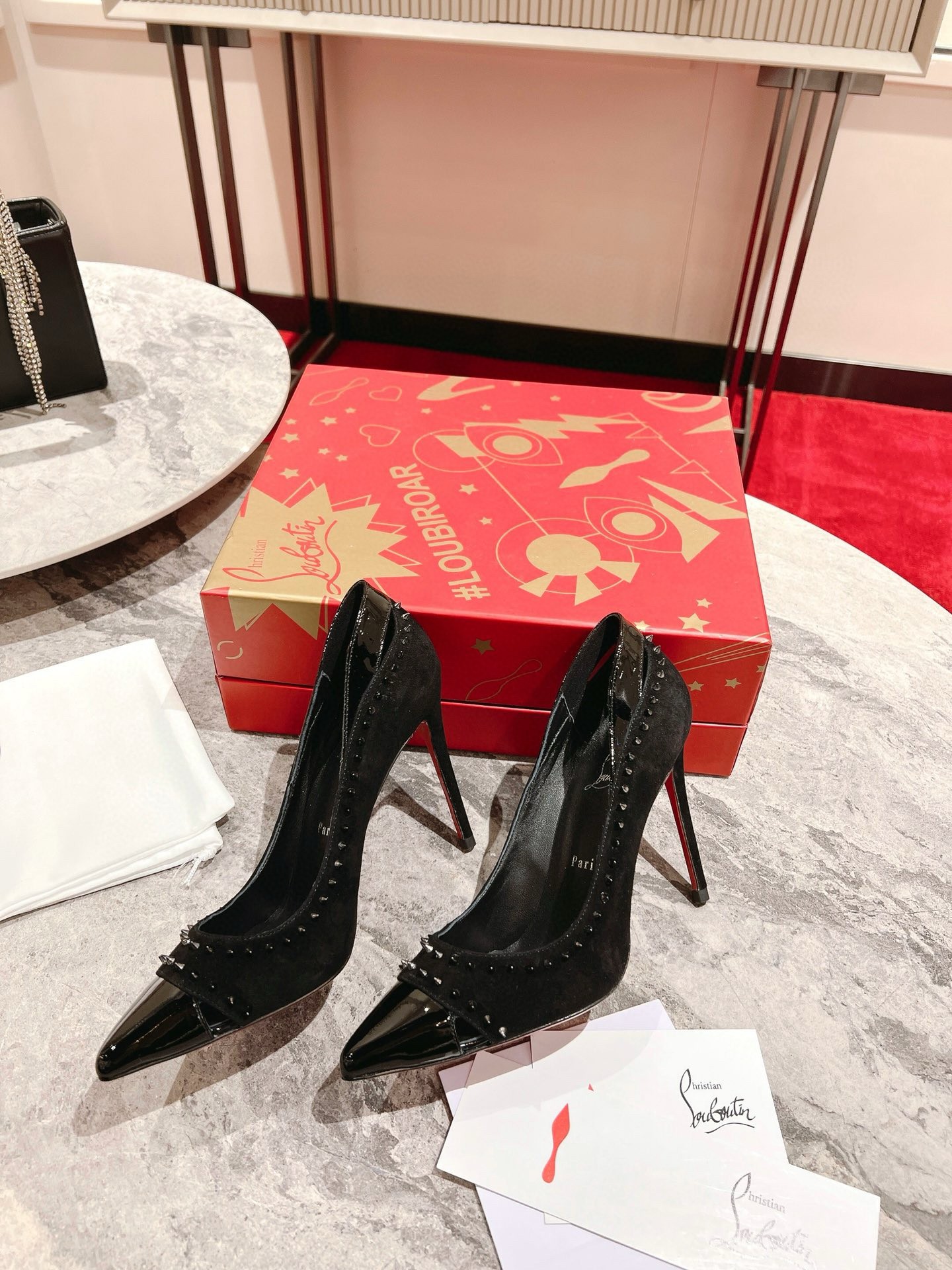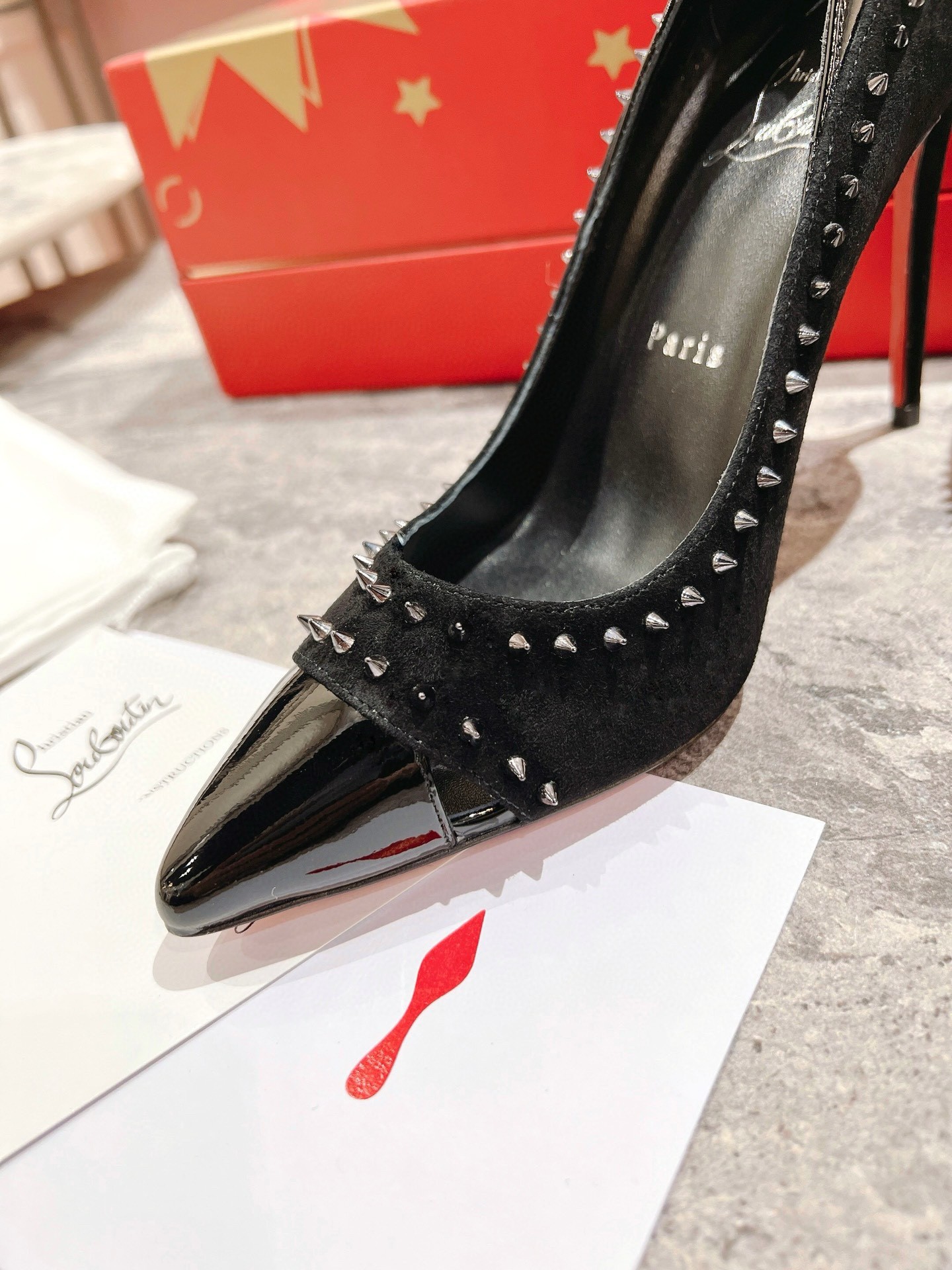 Christian Louboutin Duvette Spikes 85mm Pumps in Black Suede Leather