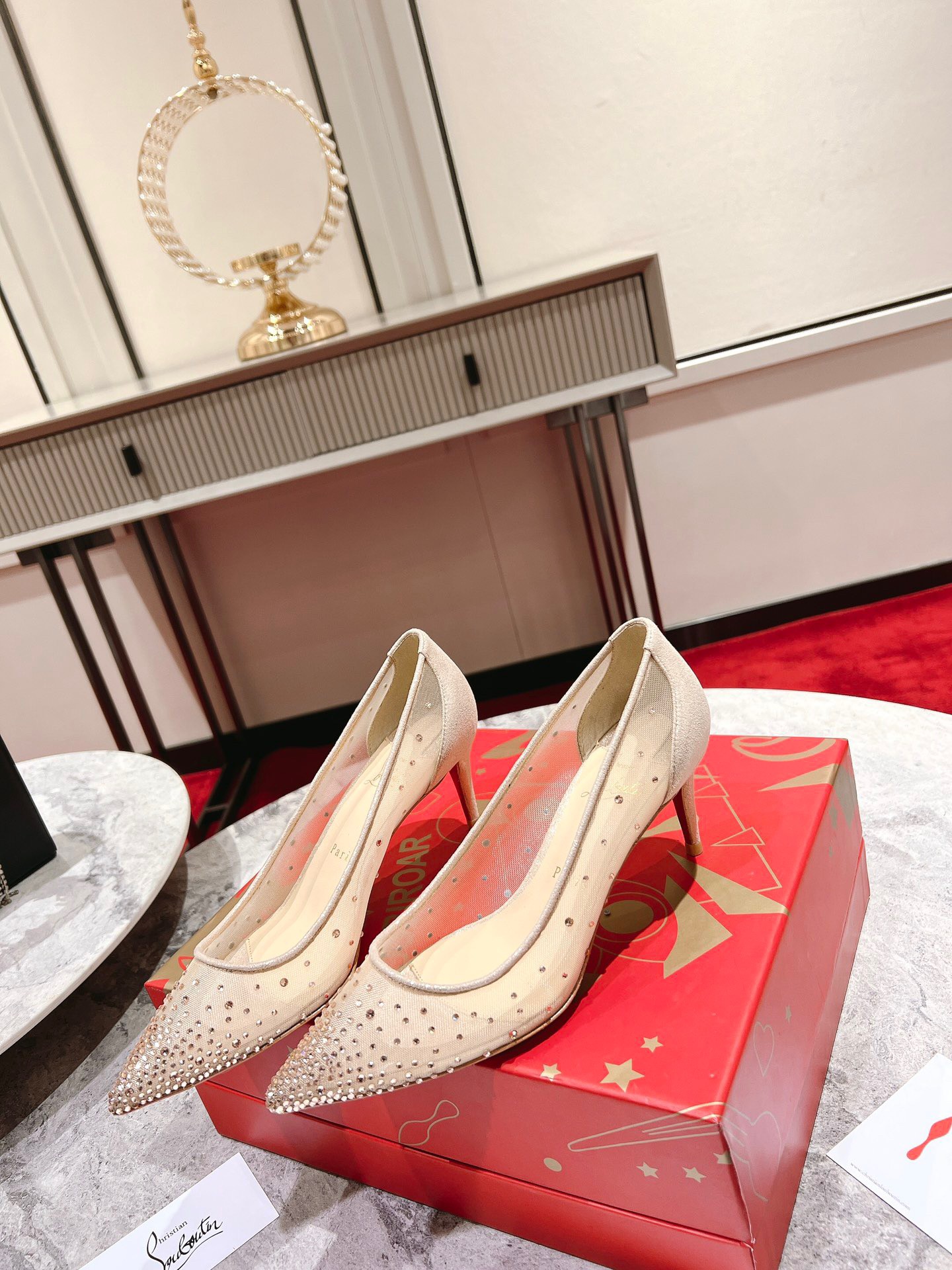 Christian Louboutin Follies Strass Pumps 70mm In Nude Mesh