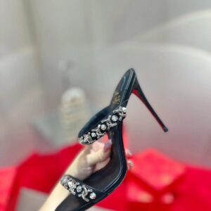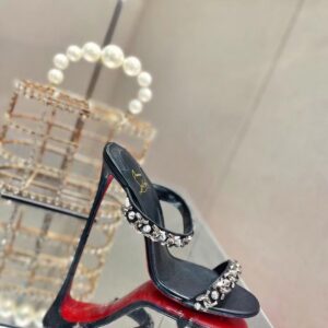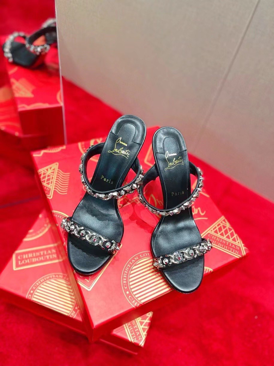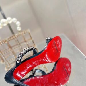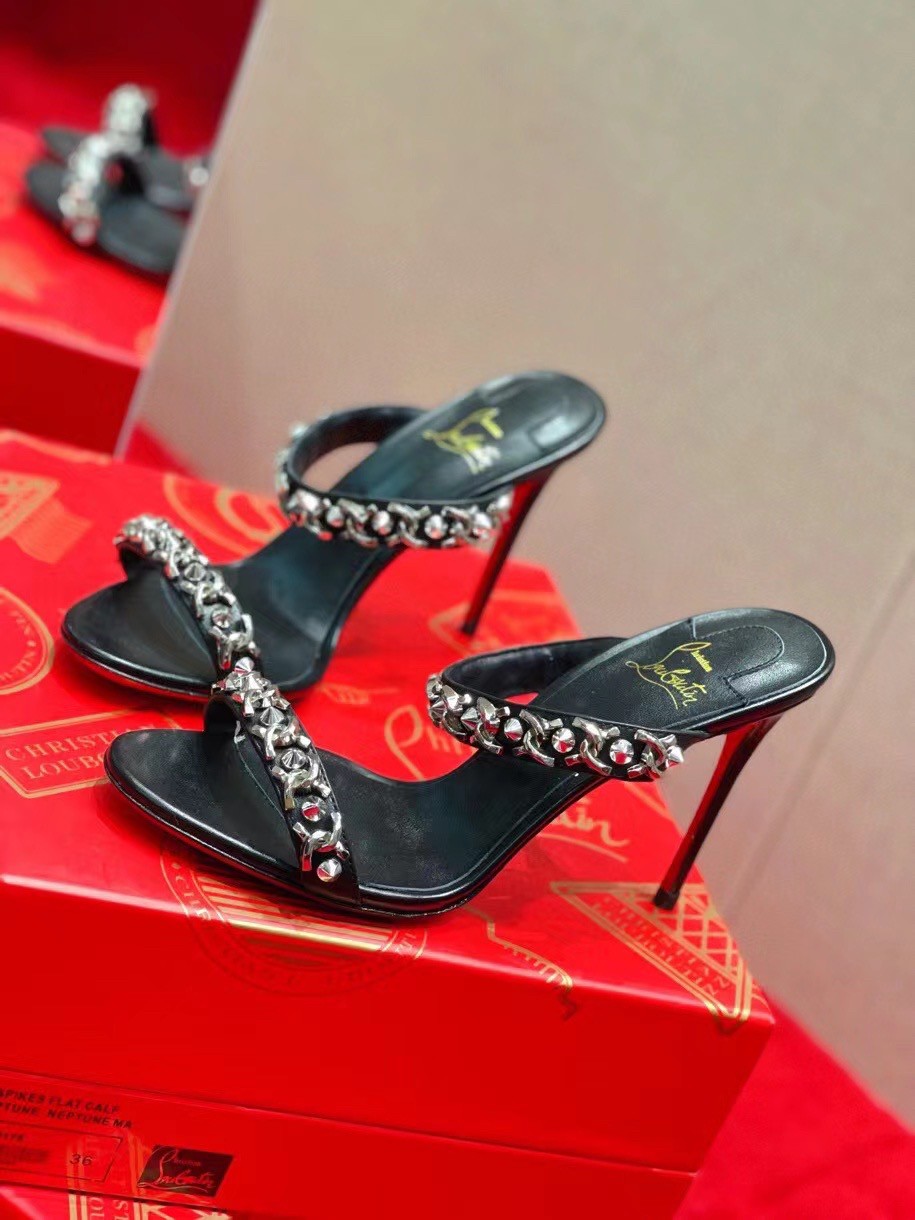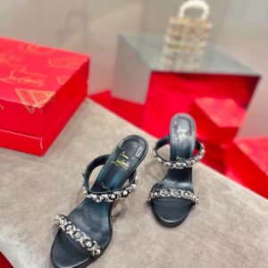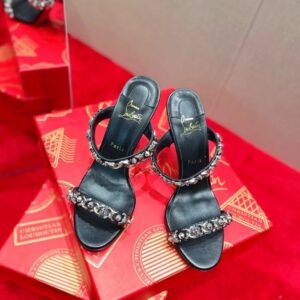 At first glance, the Just Chain sandals appear minimalist and clean – an aesthetic that typifies Christian Louboutin’s timeless approach to design. Take a closer look, however, and you’ll spot each high point; just note the scarlet-red sole, the sleek and slender heel and the parallel straps, adorned with a metal chain and silver-tone studs.