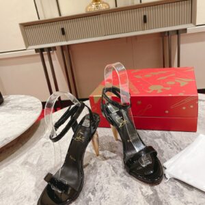 The Lipqueen sandal is both timeless and elegant. This model is part of the Loubi Mystery capsule inspired by designer Yaz Bukey’s Turkish origins and the board game, Clue. Crafted in glossy patent leather enhanced with delicate topstitching, it encases the foot with a band across the toe and slim ankle strap. This graphic boot has a 100 mm gold heel. A captivating design evoking Maison Christian Louboutin’s iconic red lipstick.