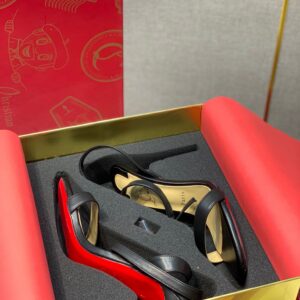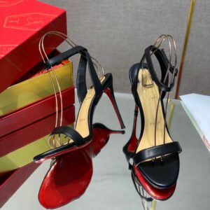 Work your feminine guiles in the Loubigirl, a reinterpretation of one of the Maison’s most iconic sandals, the Loubi Queen, inspired by 1950s pin-up girls. For the SS21 collection, Christian has reworked this classic in nappa leather. The delicate ankle strap teeters over a 100 mm wrapped stiletto heel, while the asymmetrical front strap perches atop a wearable flat sole.