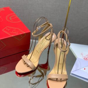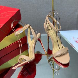 Work your feminine guiles in the Loubigirl, a reinterpretation of one of the Maison’s most iconic sandals, the Loubi Queen, inspired by 1950s pin-up girls. For the SS21 collection, Christian has reworked this classic in Nappa Leather. The delicate ankle strap teeters over a 100 mm wrapped stiletto heel, while the asymmetrical front strap perches atop a wearable flat sole.