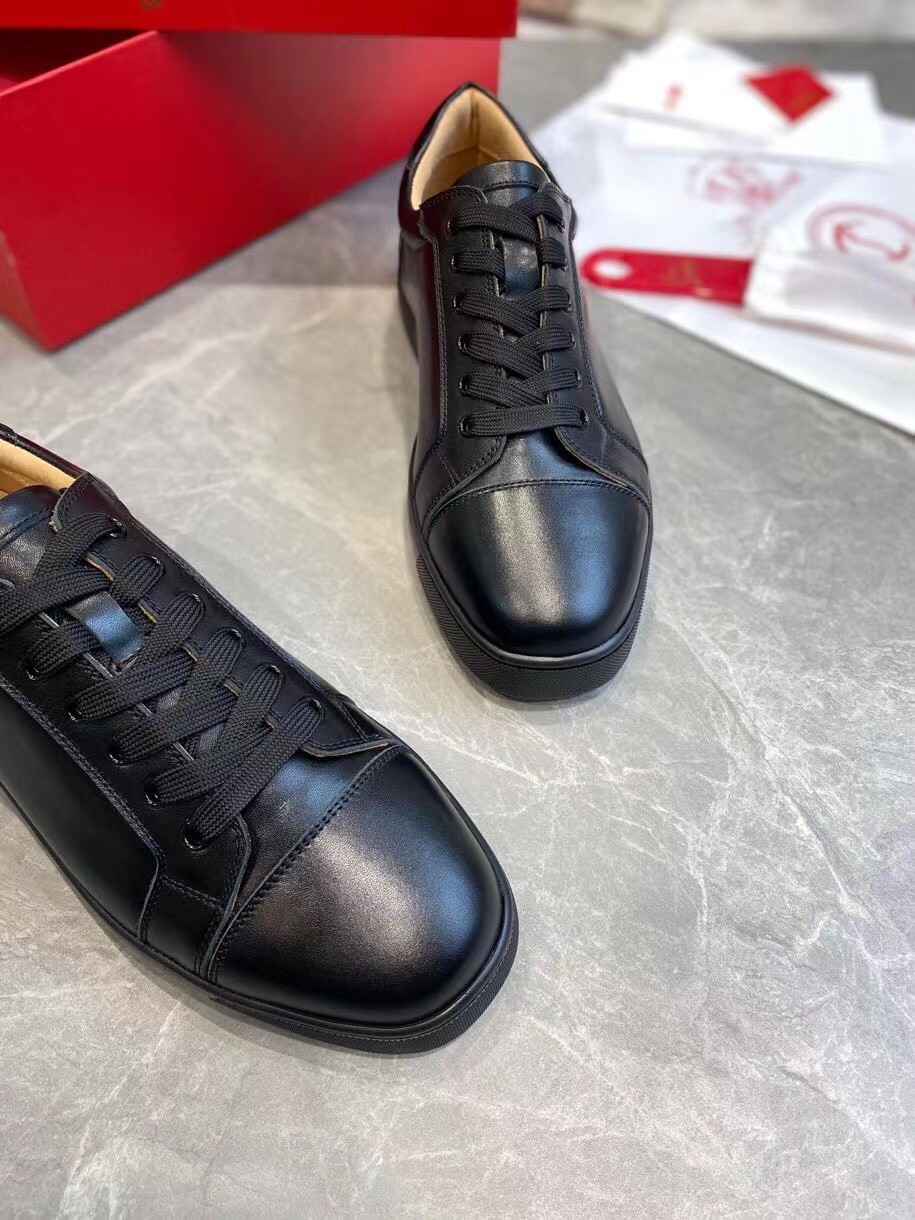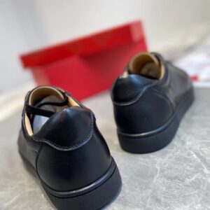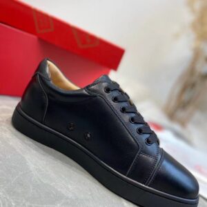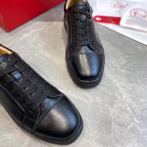 Taking inspiration from the tennis shoes of the 1980s, the Louis Junior Flat effortlessly blends retro chic with audacious modern elements. A master of reinvention, this sneaker takes on new textures and fabrics each season. This model features a classic look in all-over smooth Black calfskin leather, for those days when only timeless style will do. A signature Louboutin red sneaker sole adds a hint of daring.