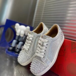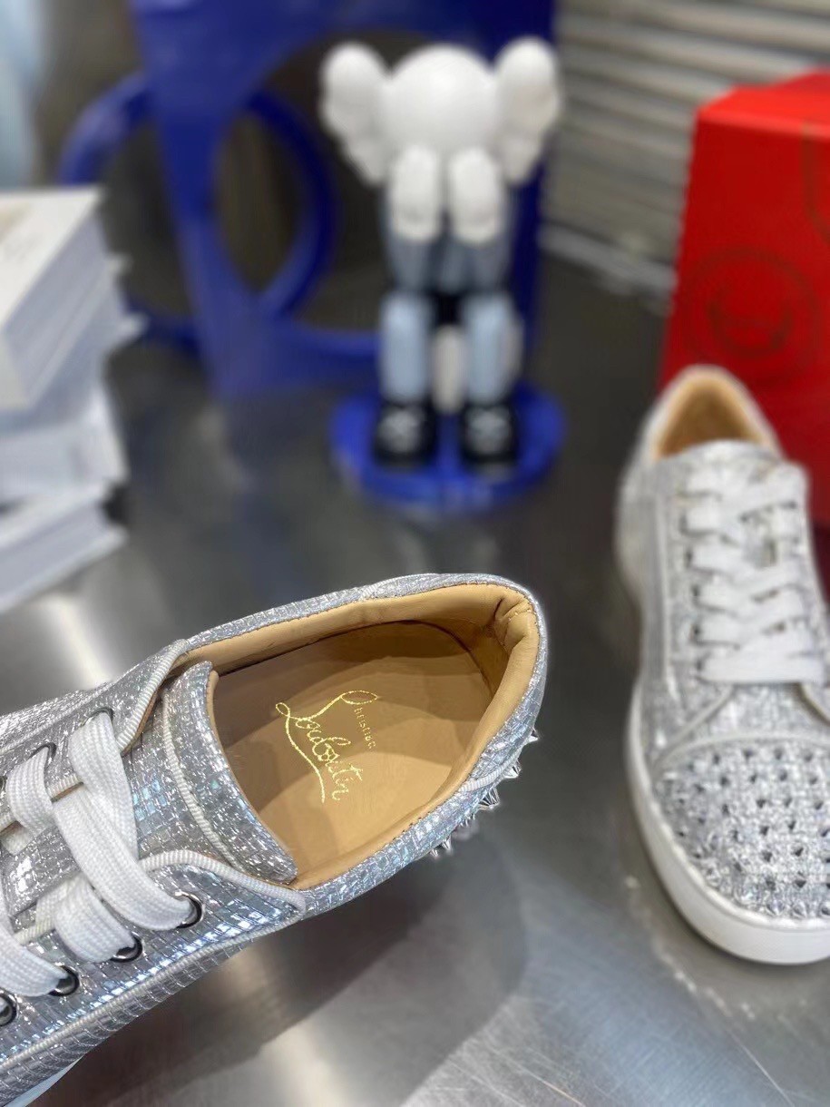 The contemporary lines of the Seavaste 2 Orlato sneaker are set on a rubber sole. This timeless model is dressed in silver calfskin. It is enhanced on the toe and back with signature spikes, an illustration of Maison Christian Louboutin creativity. Its grosgrain finishes give this shoe a refined allure.