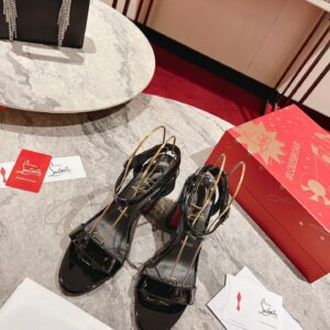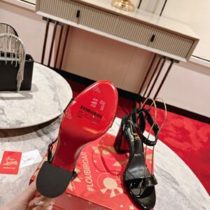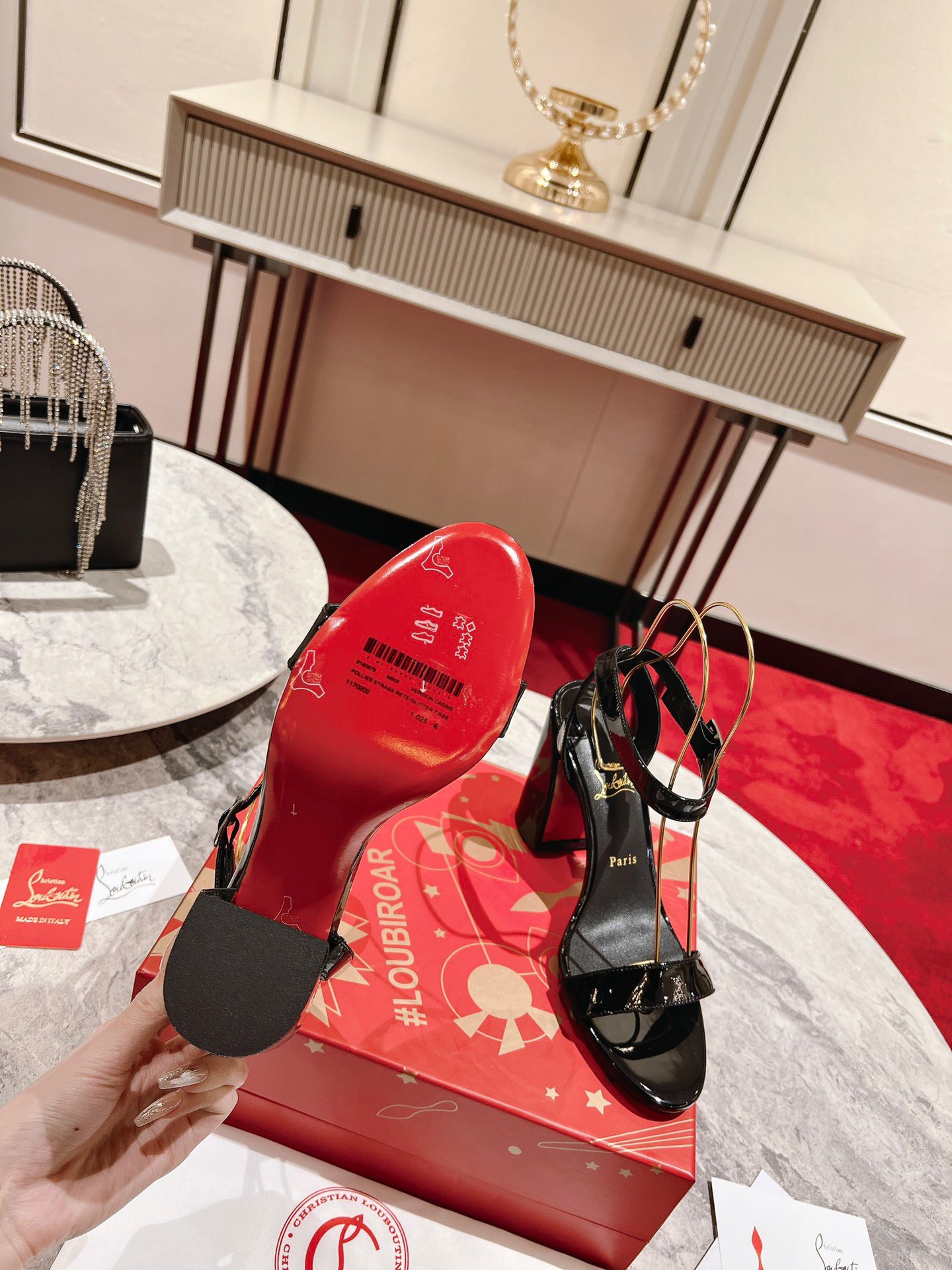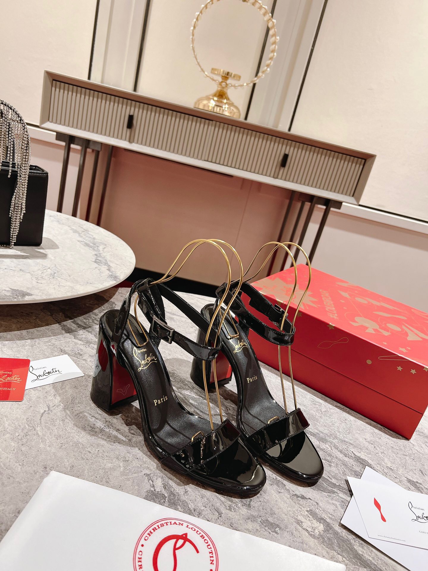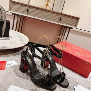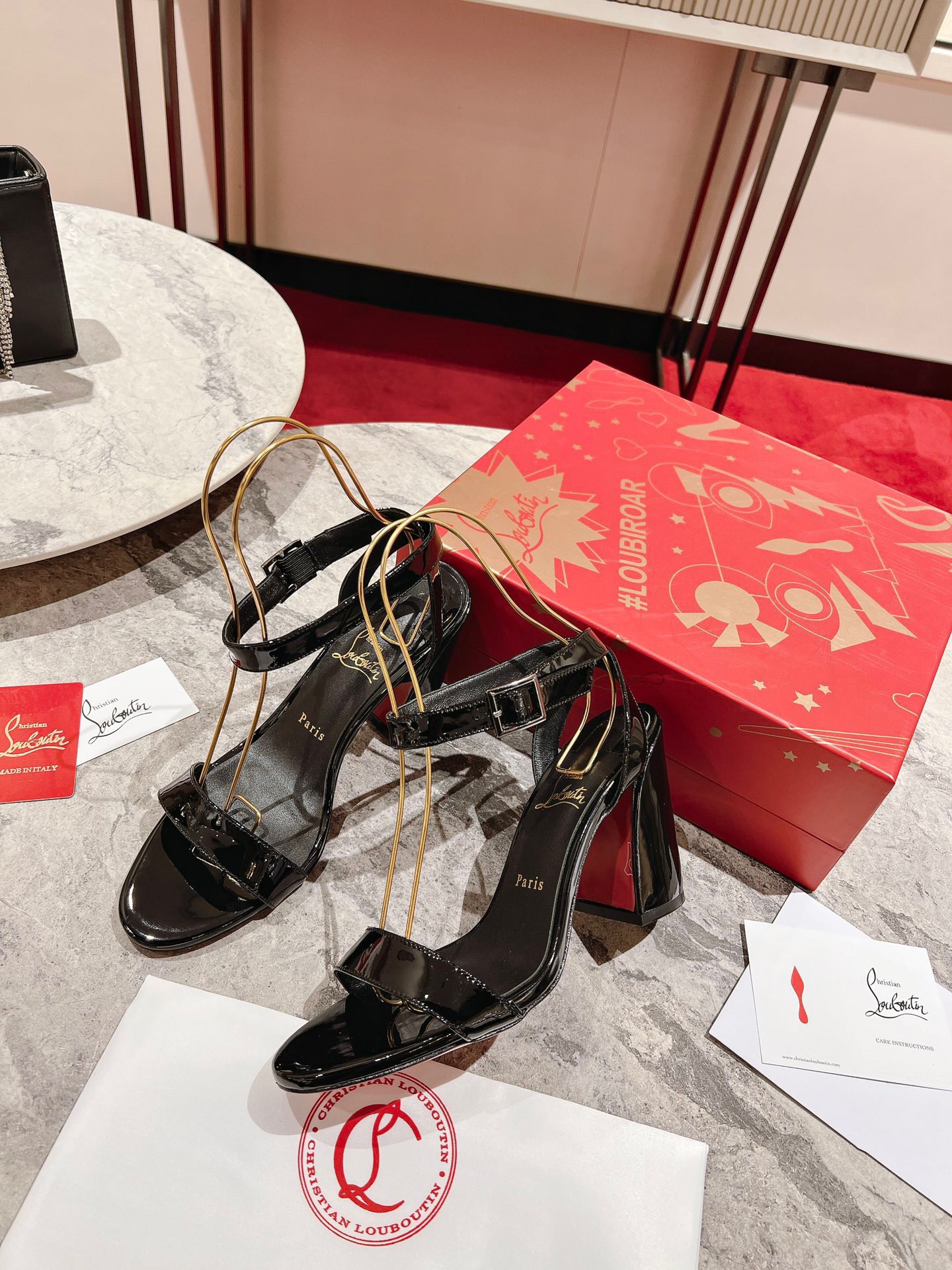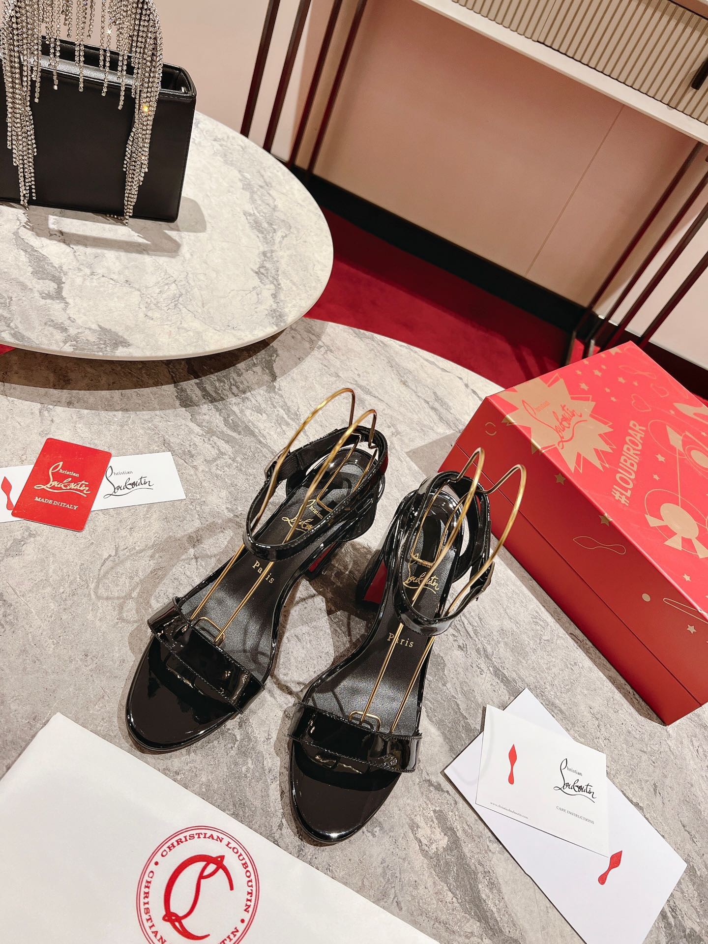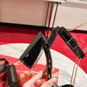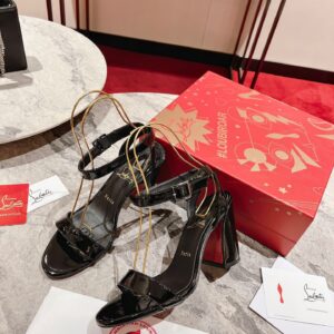 A summery model with sleek lines, the Miss Sabina sandal features an 85 mm asymmetrical heel. The straps cross behind the ankles and are adorned with delicate square clasps. Entirely crafted in patent calf leather with discreet topstitching, it showcases Maison Christian Louboutin’s creativity and expertise.