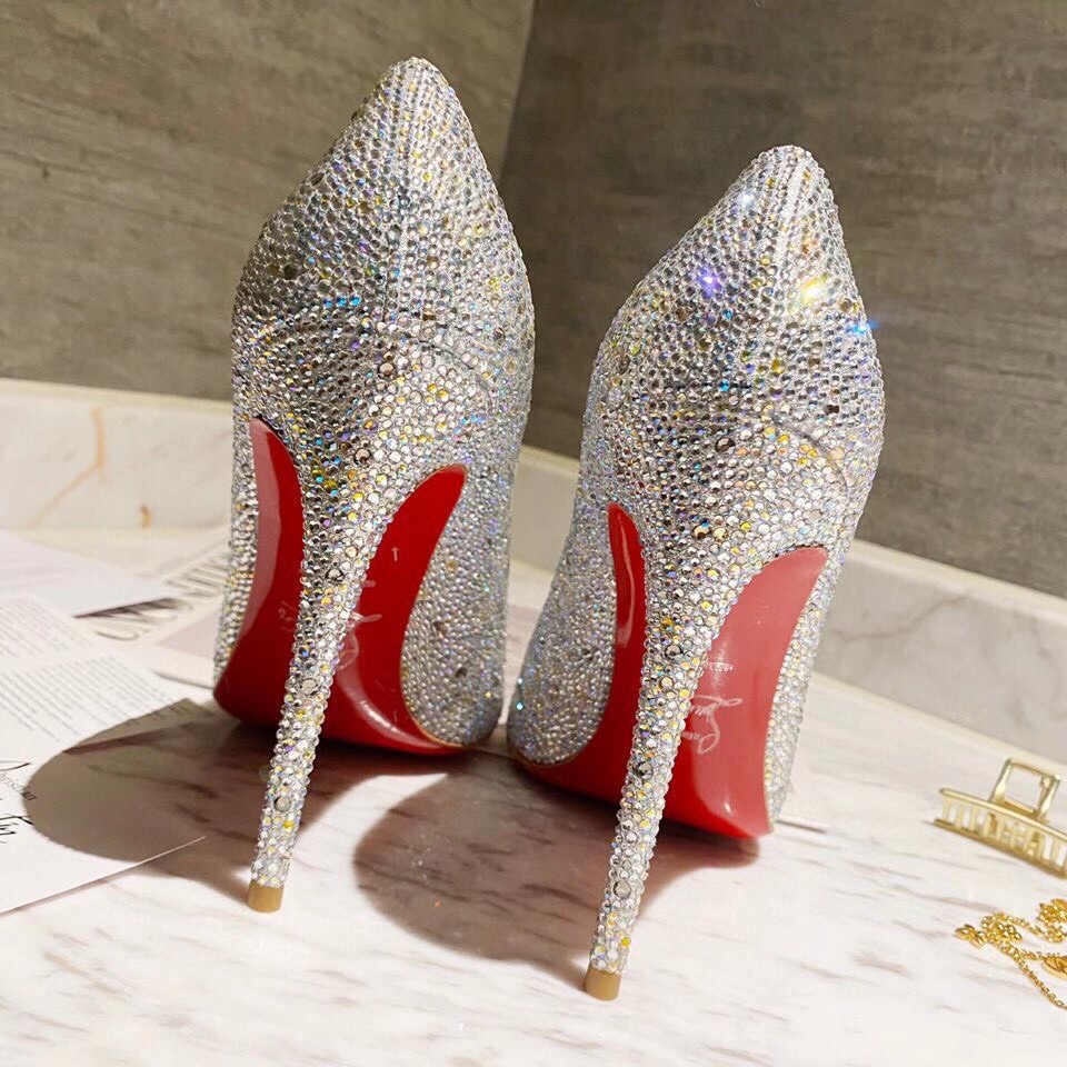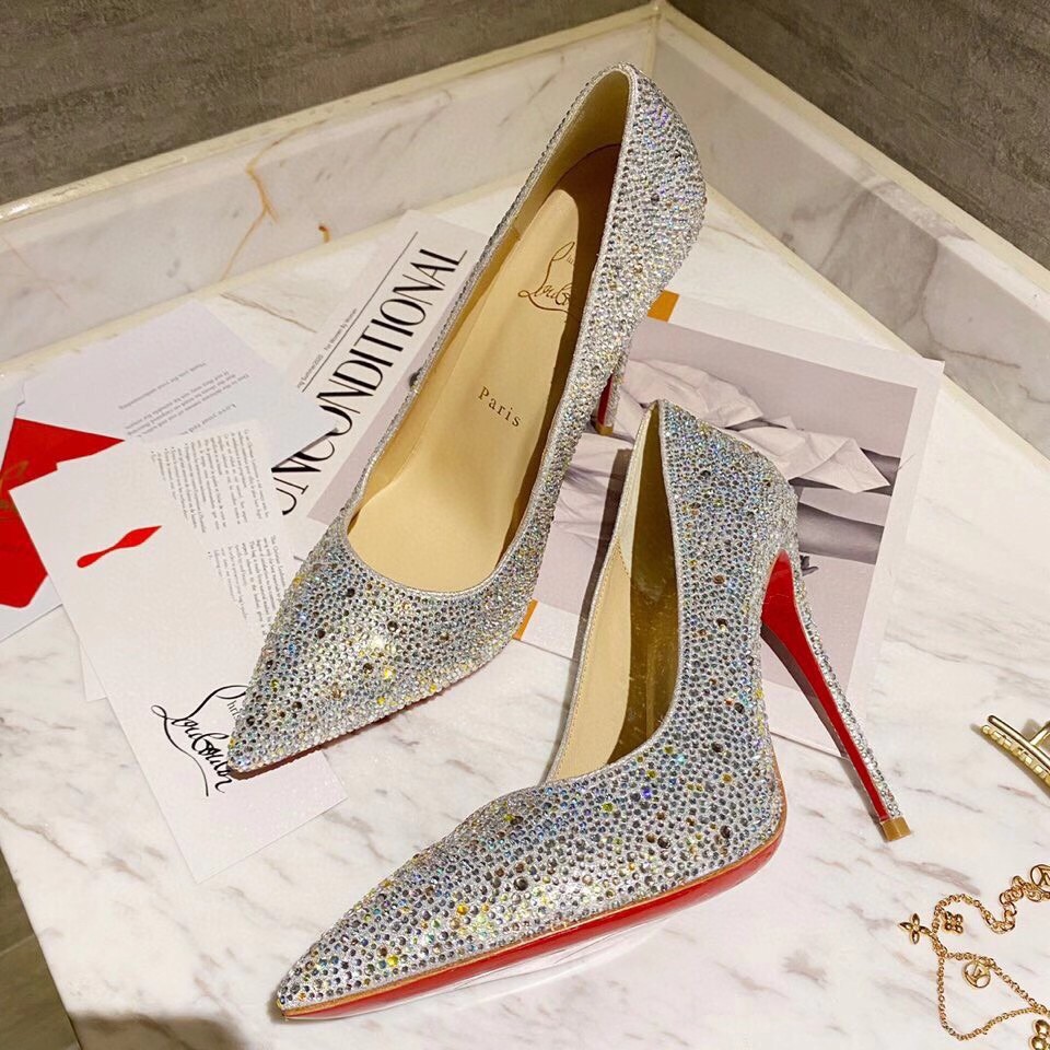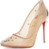 An iconic model, the Kate pump is cloaked in Nude Veau Velours with hand-placed strass from toe to tip highlighting its elegant curves. Mounted on a 100mm heel, it raises the slender silhouette with accuracy, revealing with each step the savoir-faire of the Maison Christian Louboutin.
