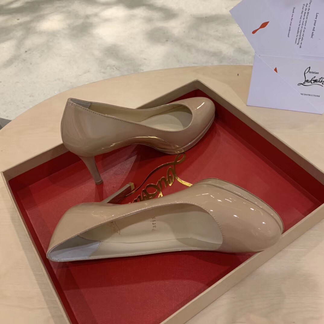 Christian Louboutin’s New Simple Pump is a chic update on the House’s signature Simple Pump style. In patent calfskin leather, the round-toe model features sleek curves, a subtly retro design and low-cut vamps. The pair is mounted on a vertiginous 85mm stiletto and a narrow, exposed platform in a glossy finish for extra lift.