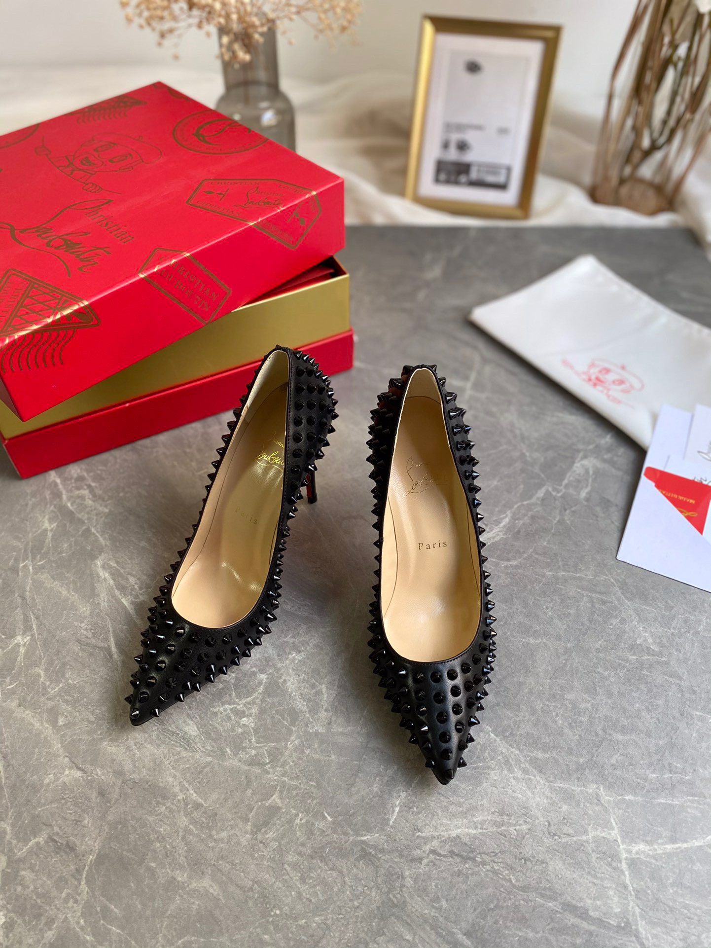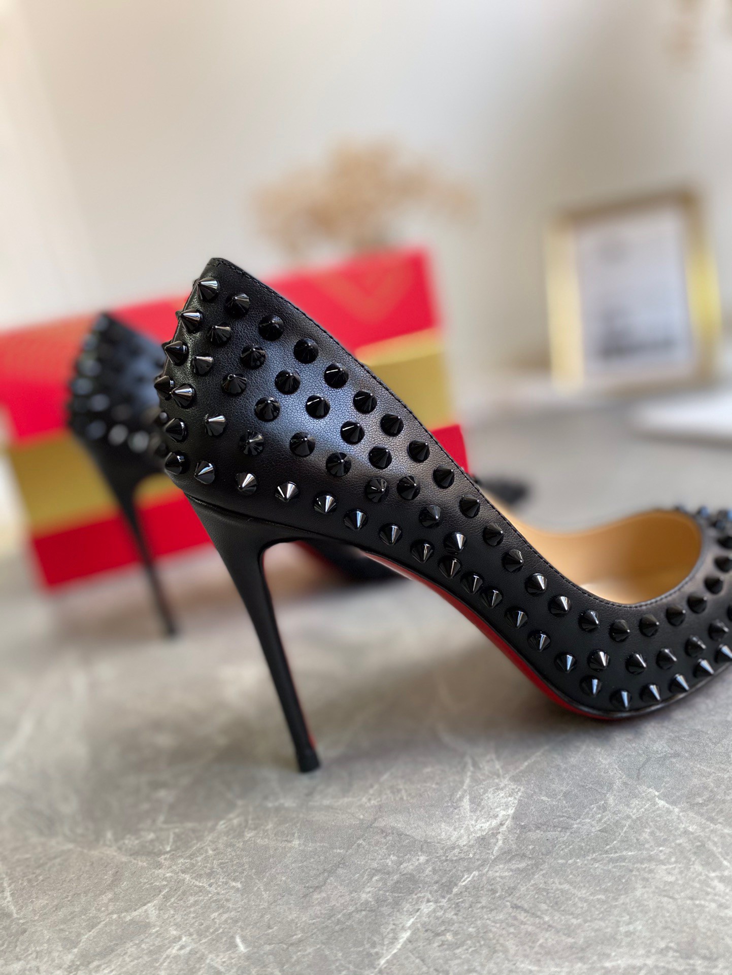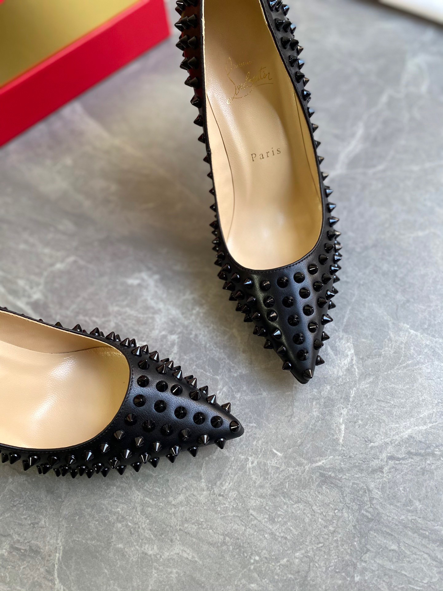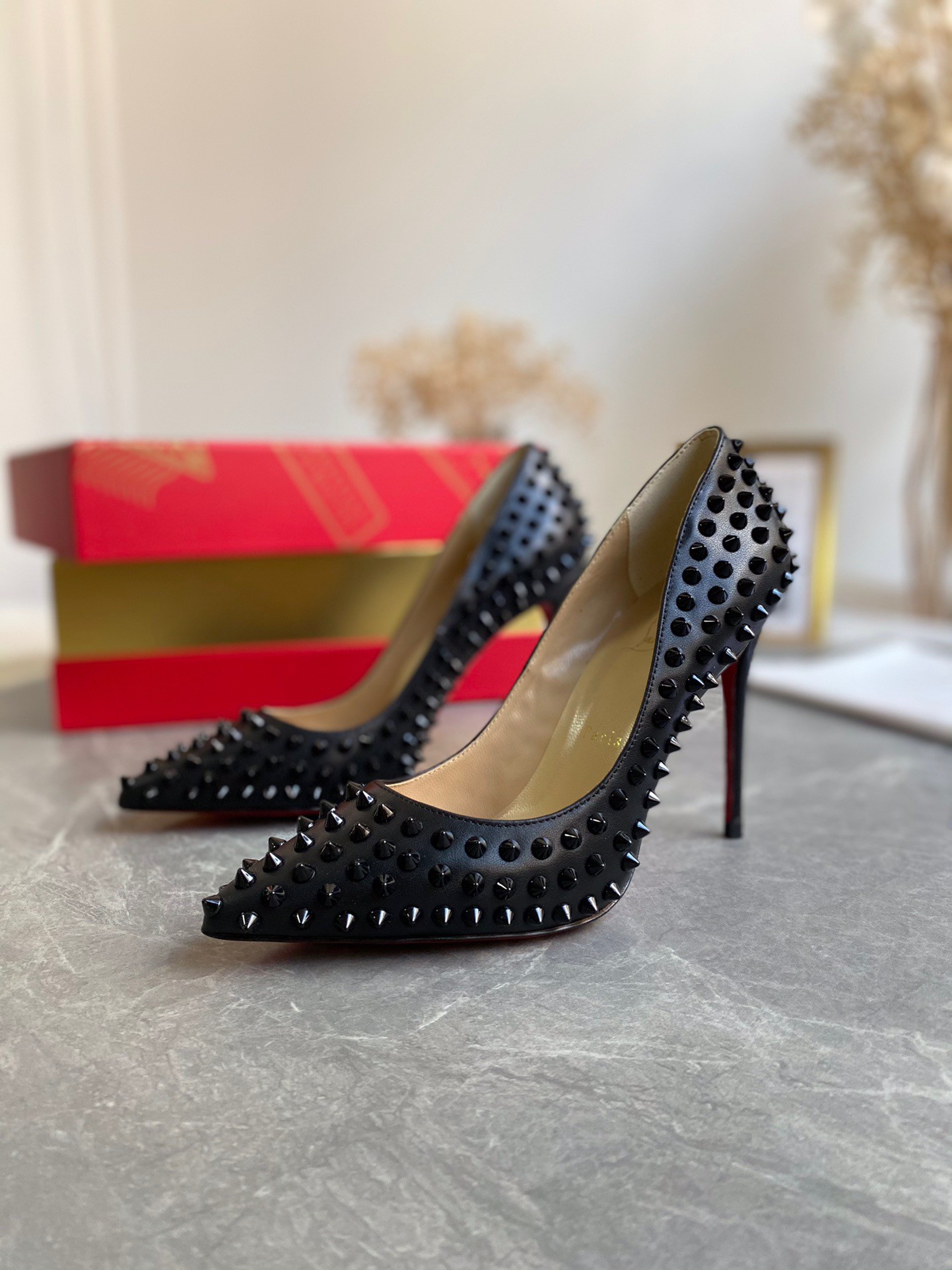 With a razor-sharp stiletto heel and spiked stud embellishment, Christian Louboutin’s black leather pumps are a tough-luxe evening choice. Pair them with after-dark favorites to add a rock-chic edge to every outfit.