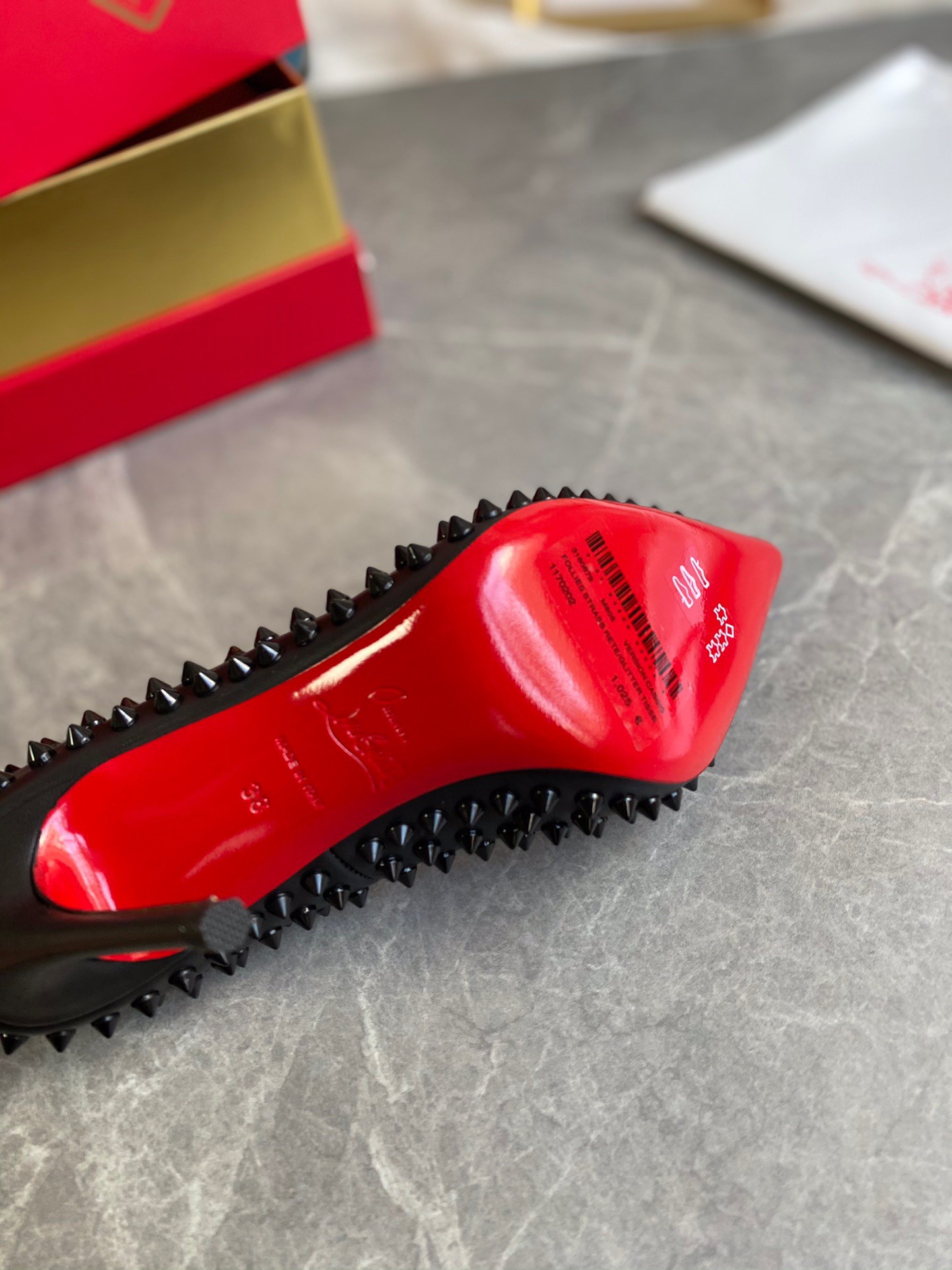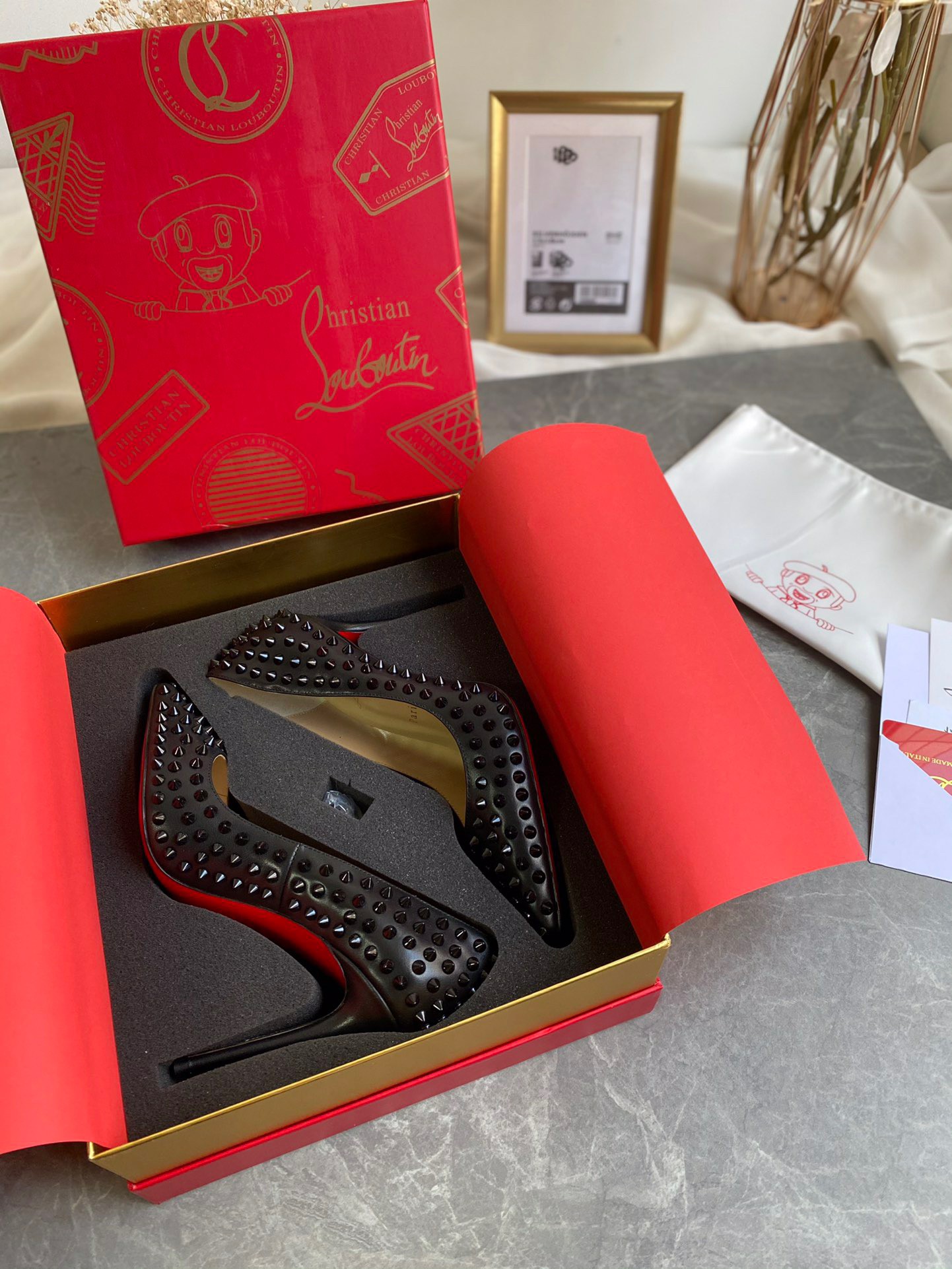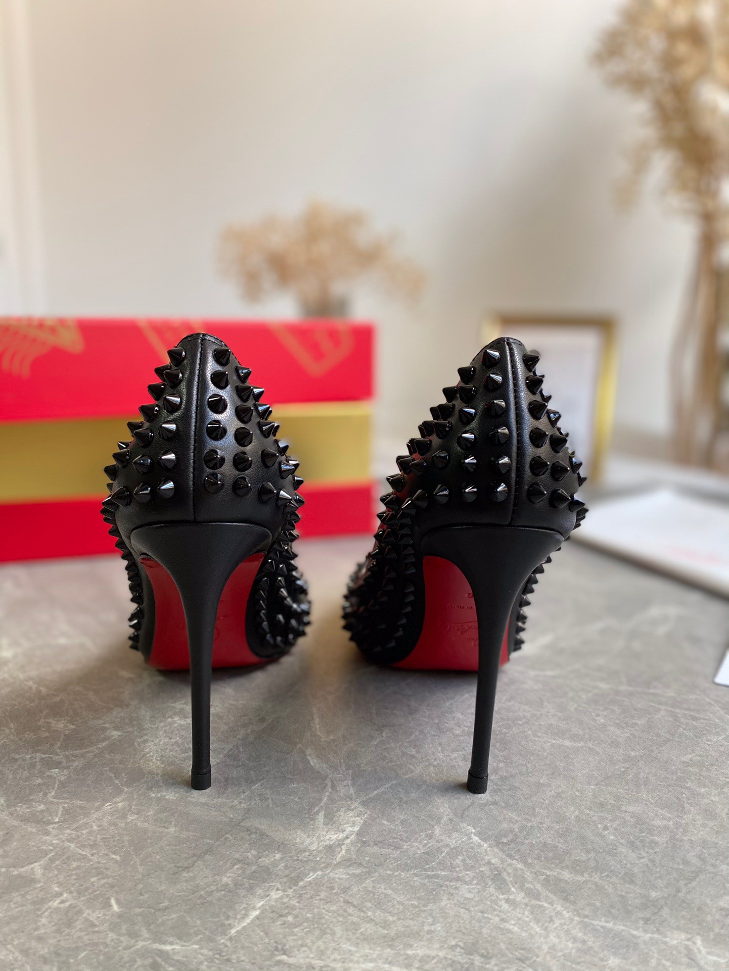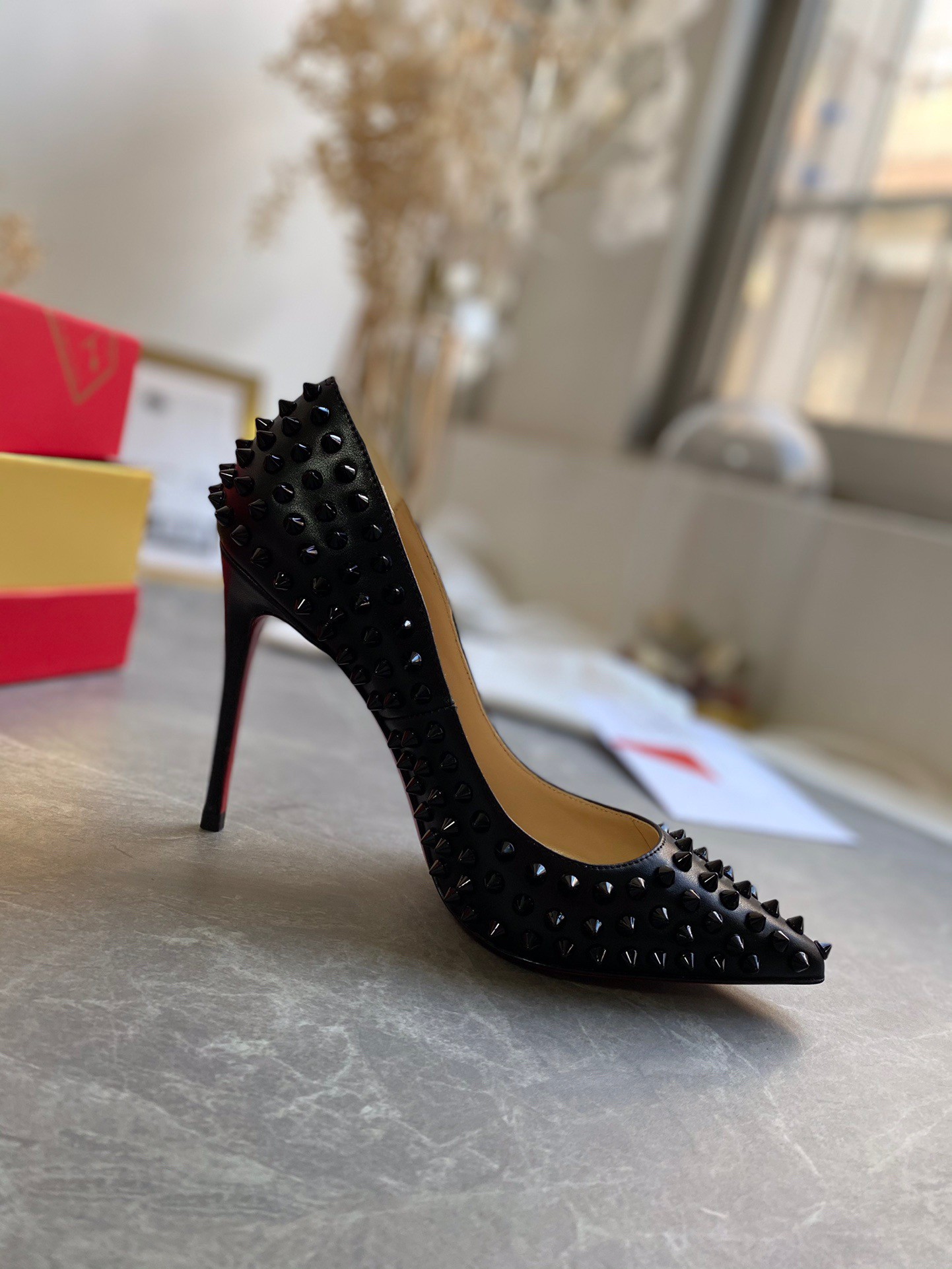 With a razor-sharp stiletto heel and spiked stud embellishment, Christian Louboutin’s black leather pumps are a tough-luxe evening choice. Pair them with after-dark favorites to add a rock-chic edge to every outfit.