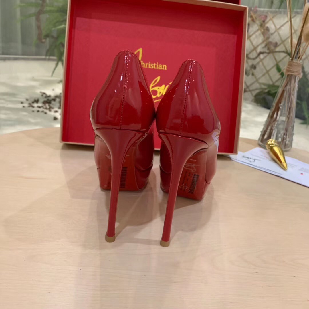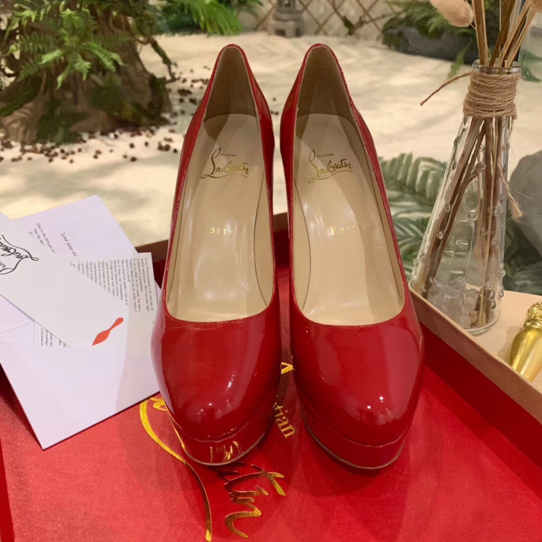 Dirditta, following the signature silhouette of the Bianca, is a classic low-cut patent leather pump perched on an expertly architected 130mm stiletto heel and an audacious platform sole for a dizzying profile.