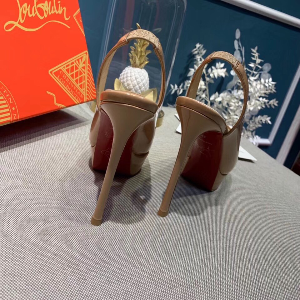 With her jaw-dropping height and luxurious shape, “Lady Peep Sling” seduces even the toughest of critics. Her substantial platform reduces the plunge of the dramatic 130mm pitch, allowing you to walk with confidence. Slip on this pair in black patent leather for a glamorous take on the pin-up look.