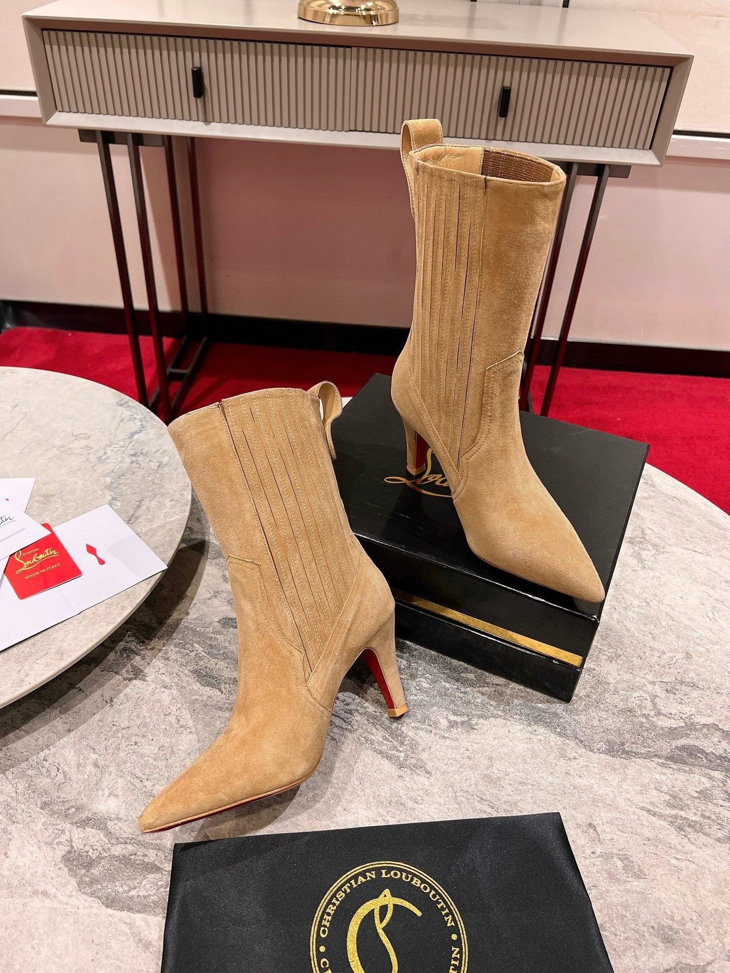 Christian Louboutin Santigag 85mm Boots in Brown Suede Leather