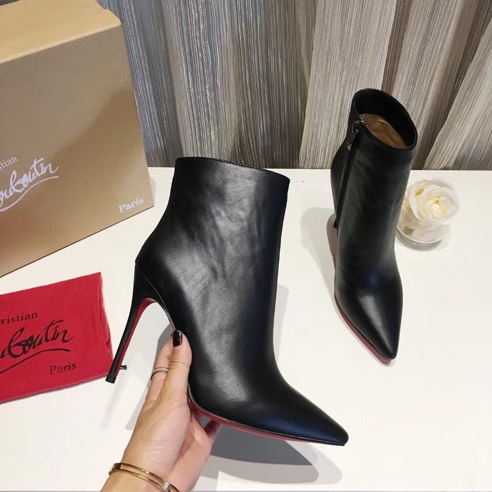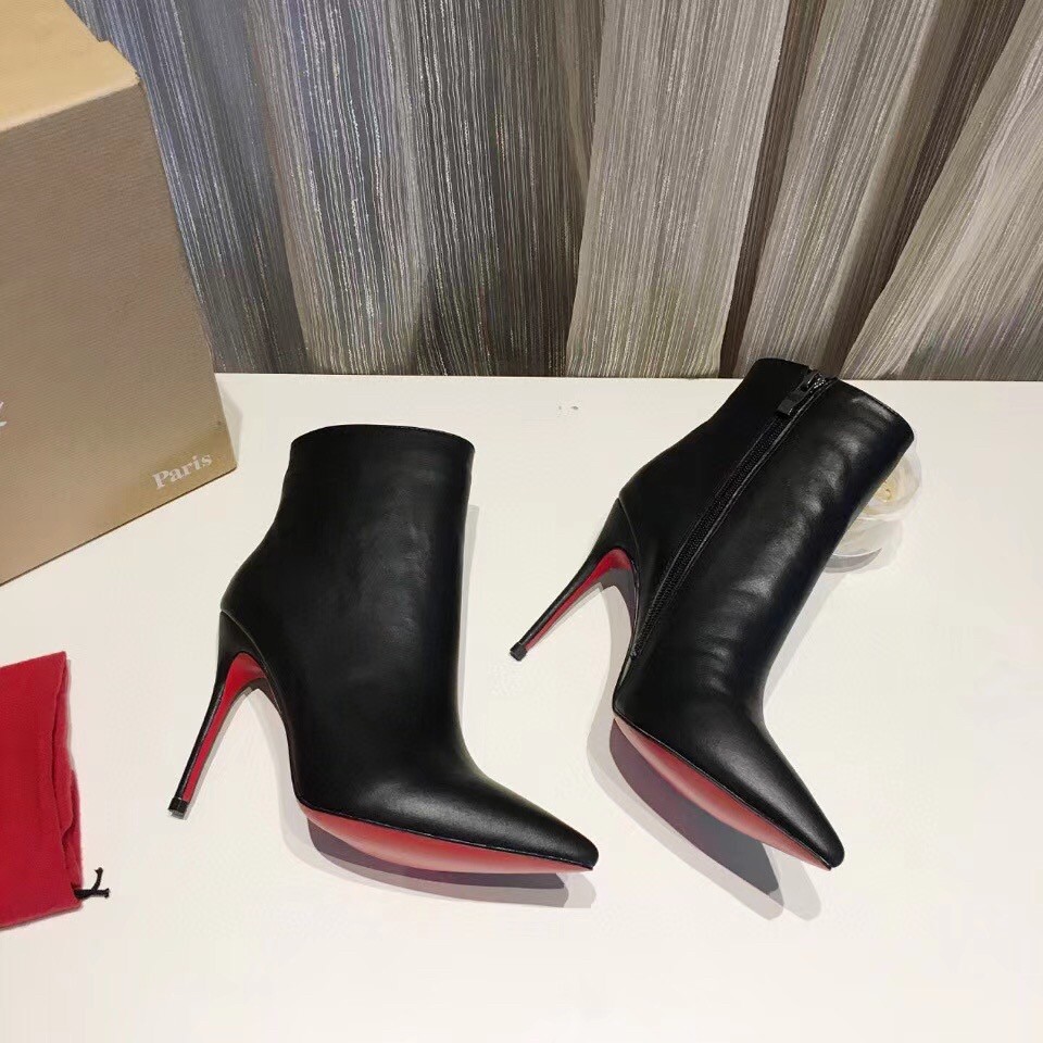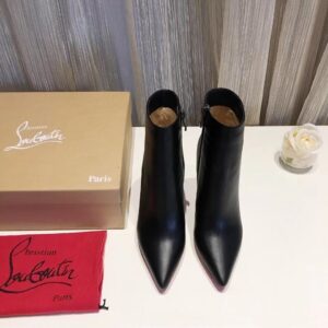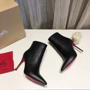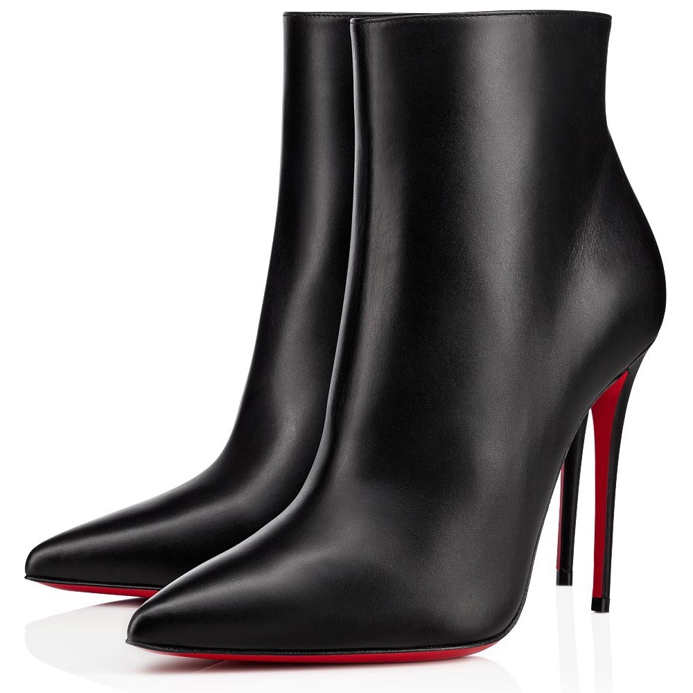 Combining simple elegance with clean lines, the So Kate Booty has become a true icon of Christian’s design repertoire. Curved lines gently encase the foot, secreted by a zip closure, and plunge down to a pronounced vamp ending in a winklepicker point. The sophisticated upper perches atop a wearable 100-mm stiletto heel that elongates the leg. This season’s iteration comes in a vampish black calfskin leather, lined with signature red.