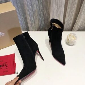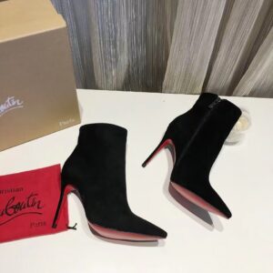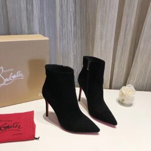 Combining simple elegance with clean lines, the So Kate Booty has become a true icon of Christian’s design repertoire. Curved lines gently encase the foot, secreted by a zip closure, and plunge down to a pronounced vamp ending in a winklepicker point. The sophisticated upper perches atop a wearable 100-mm stiletto heel that elongates the leg.