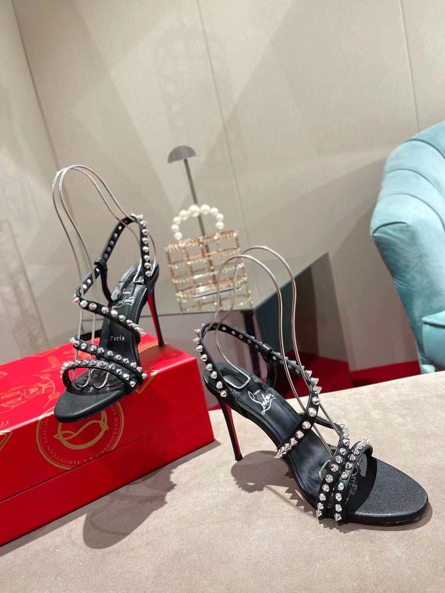 Christian Louboutin Spikita Strap 100mm Sandals In Black Leather