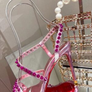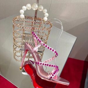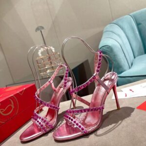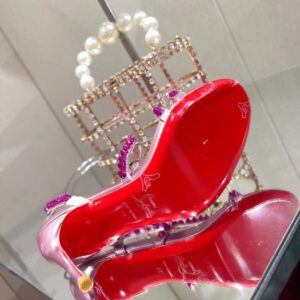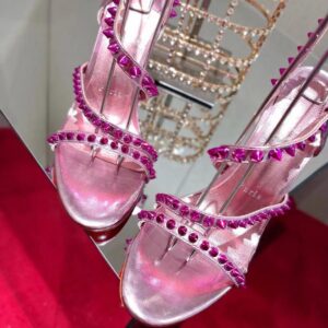 With its graphic lines and urban style, the Spikita Strap pump is charming and sophisticated. This model is set on a 100 mm heel and is made from a Confetti pink calfskin. Its straps are dotted with tone-on-tone Maison Christian Louboutin signature spikes.