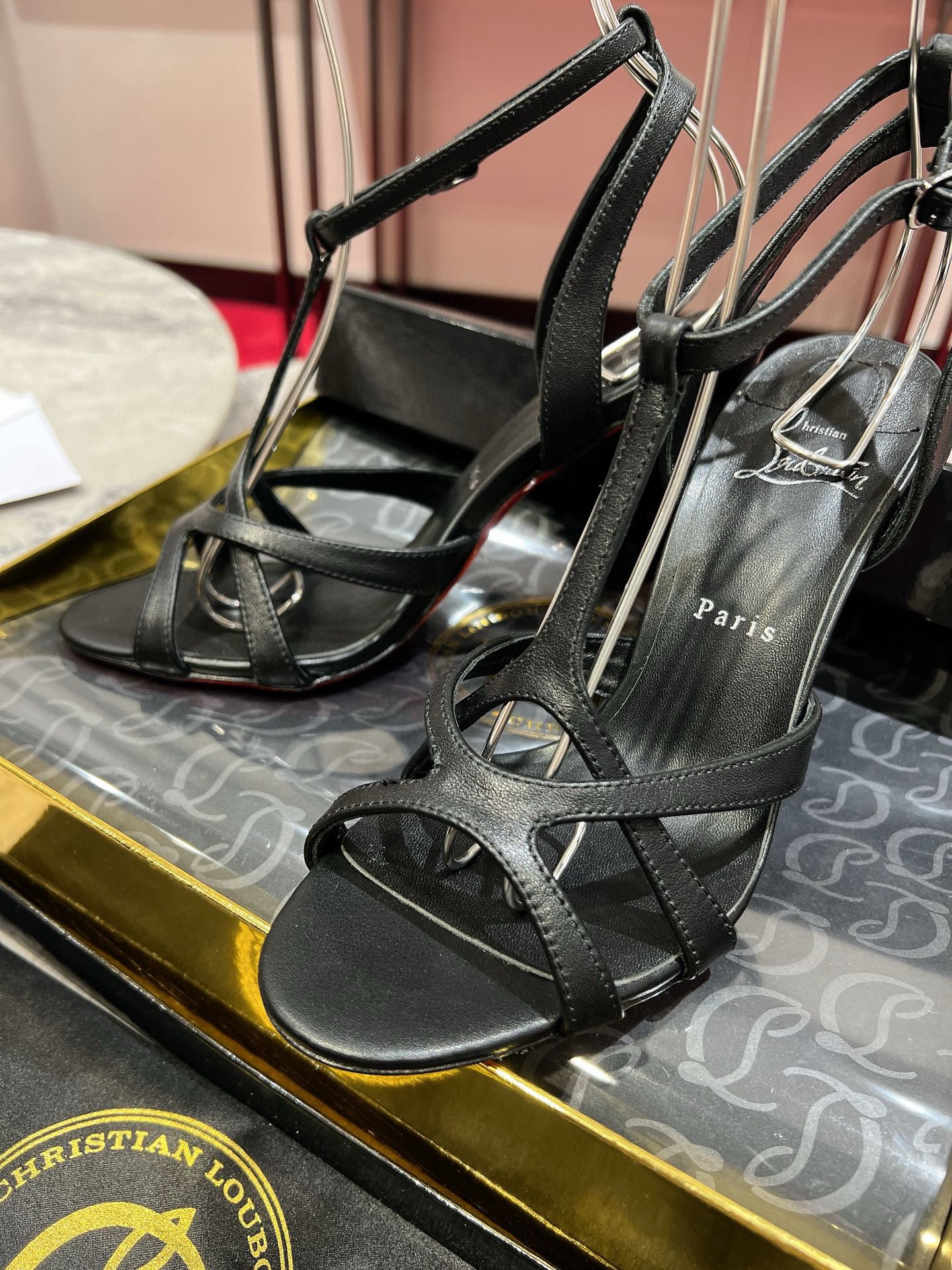 Christian Louboutin Tangueva Strappy Sandals 100mm in Black Leather