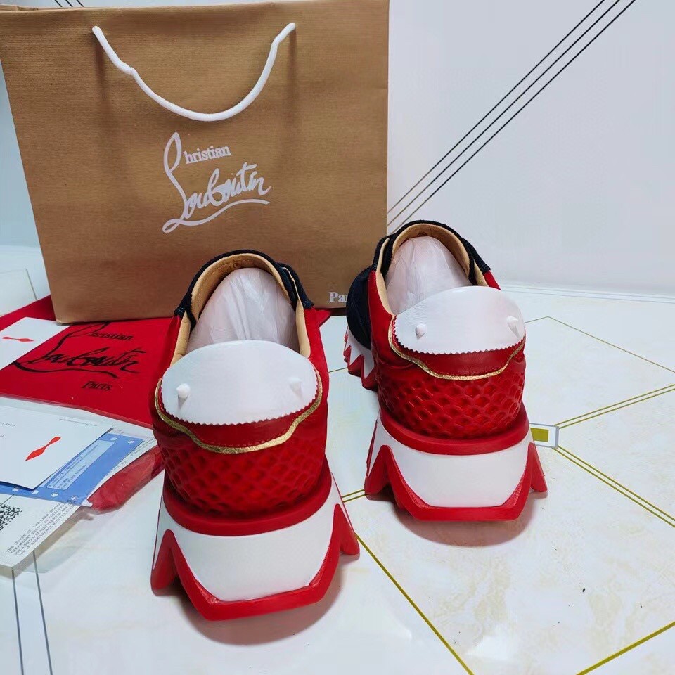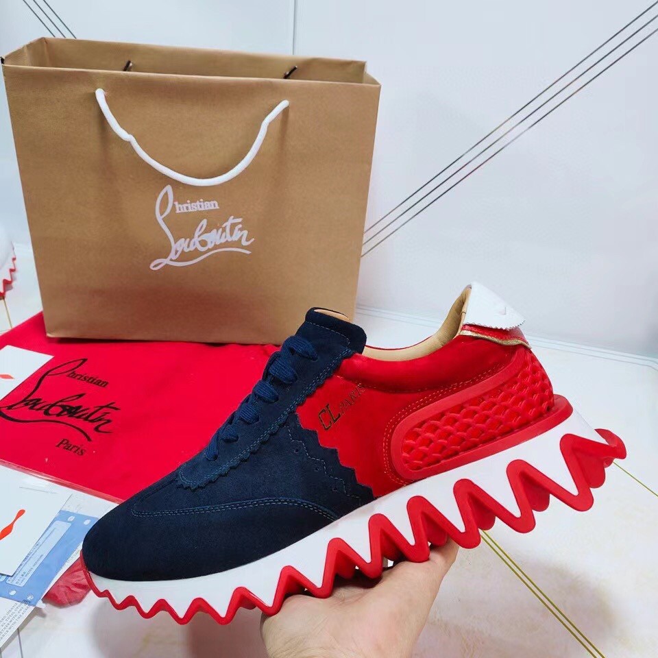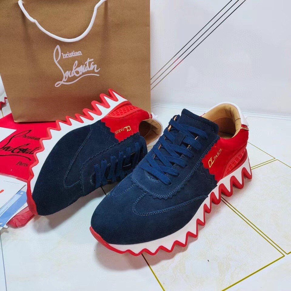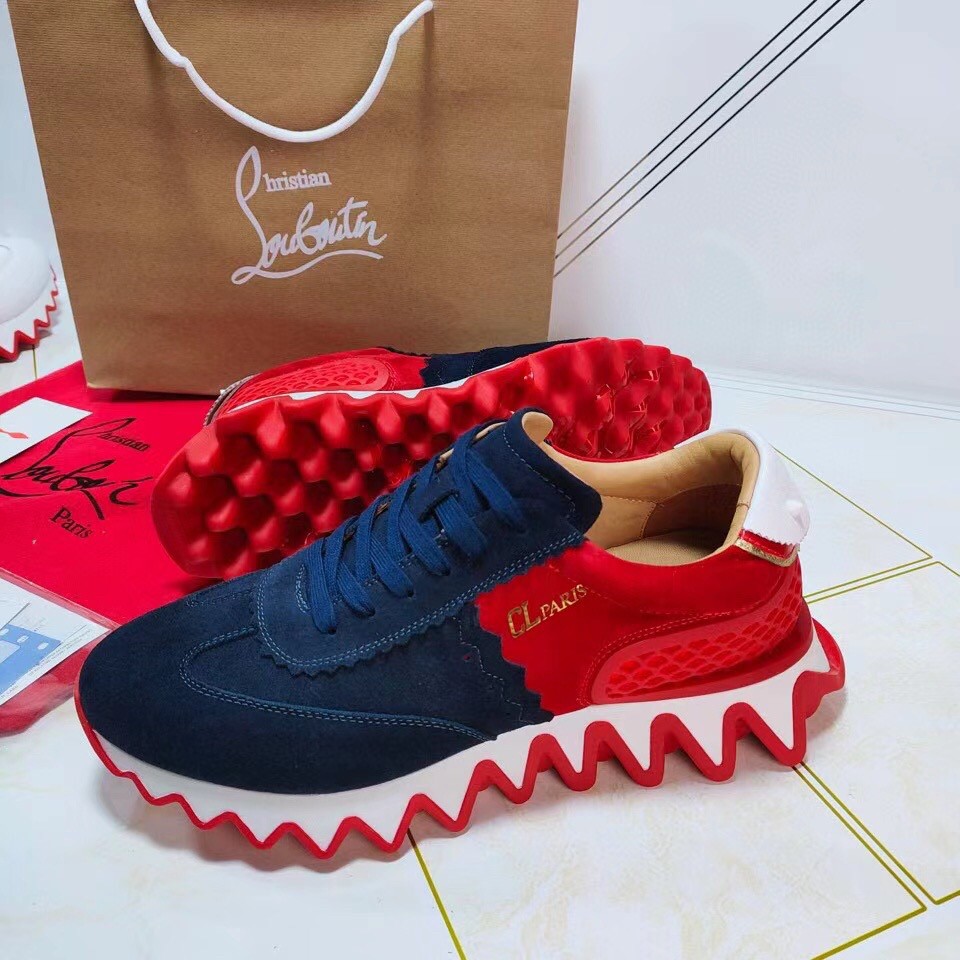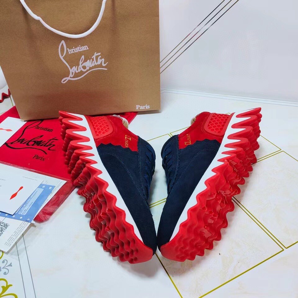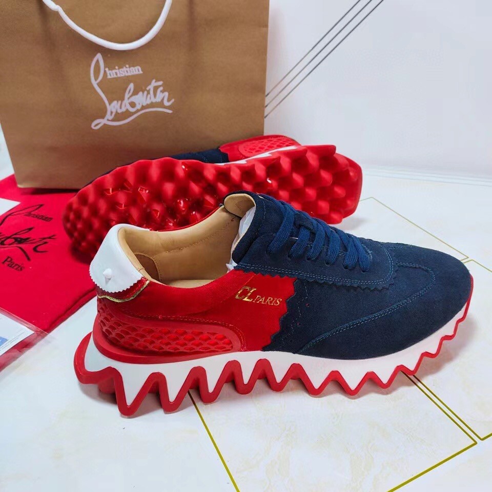 Christian Louboutin Women’s Loubishark Sneakers In Blue/Red Suede