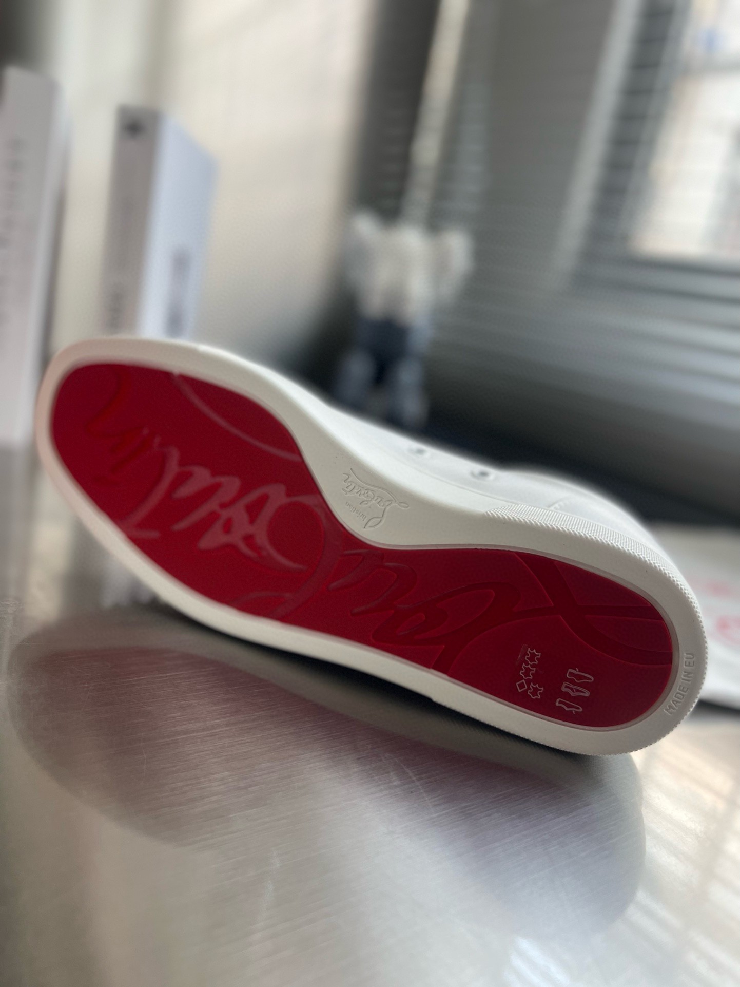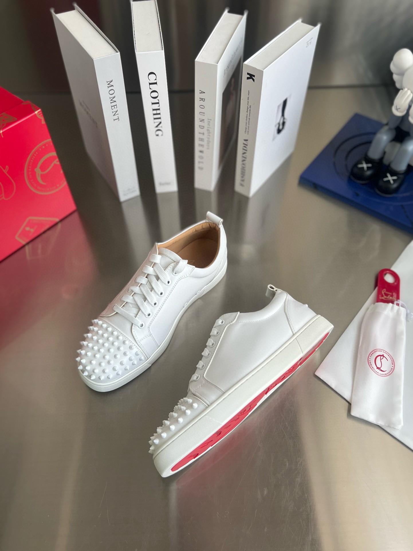The low-top Louis Junior is a core design in the Christian Louboutin sneaker edit, and this season, Louis Junior Spikes sees a black calfskin version decorated with the designer’s rock n’ roll fancy—tone-on-tone signature spikes at the toecap. They’re lined in leather for a smooth, comfortable fit and feature a stitched scar on the back counter for added edge.