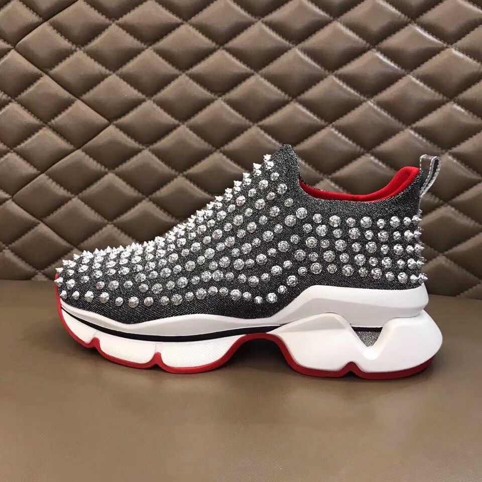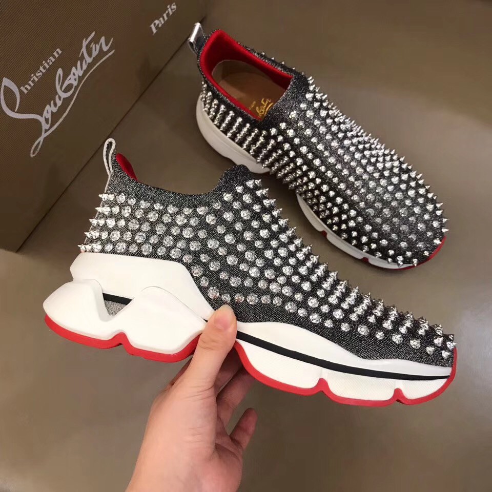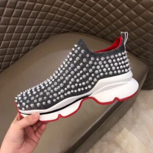 The Spiky Sock sneaker crafted as a sock will fit around the curve of the foot with lightness. Made of lamé neoprene and saturated with spikes, it is set on an XXL running and bouncing outsole. It has a pull-tab at the heel for ease of wear.