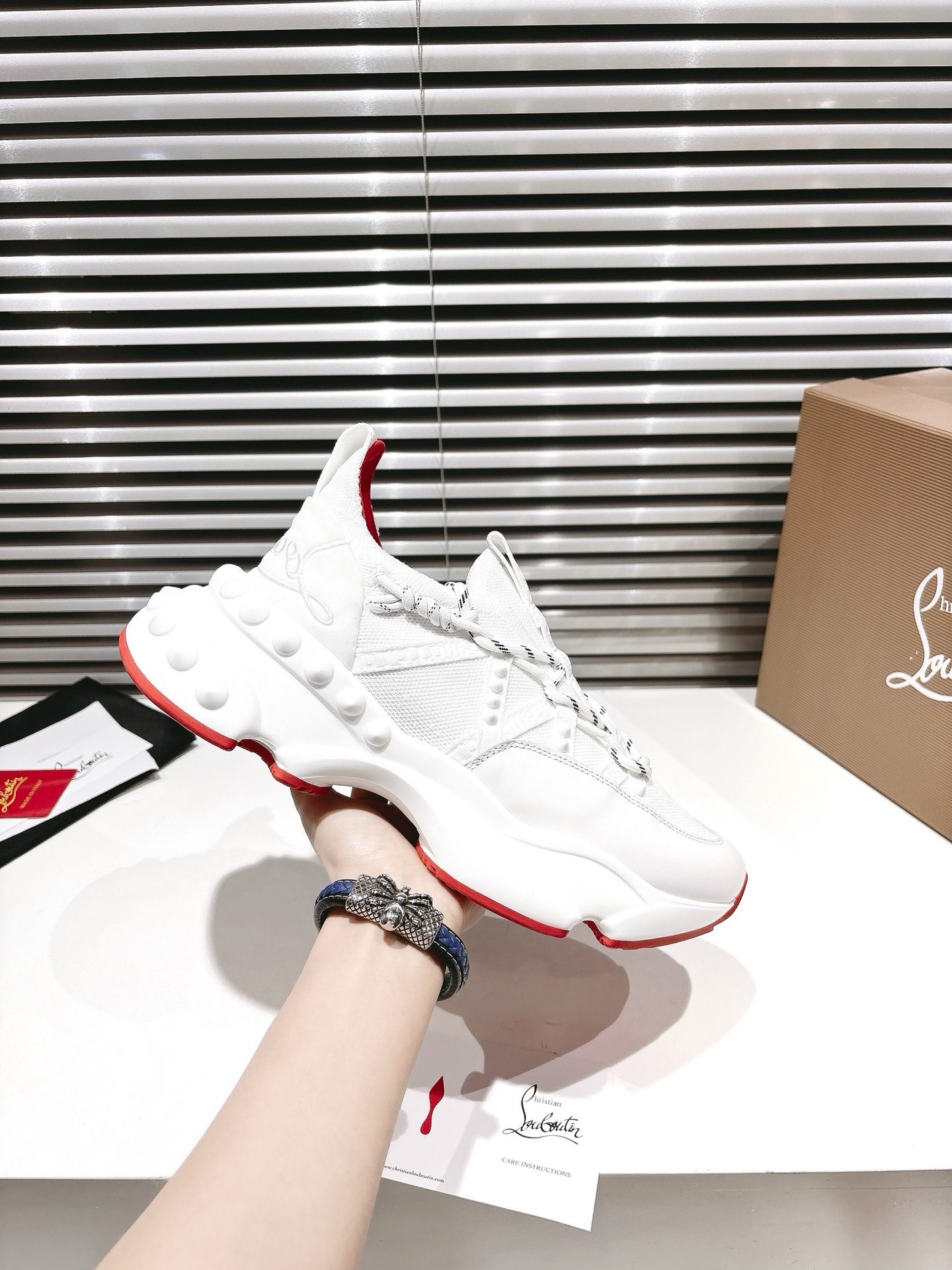 Christian Louboutin Women’s Trailnrun Sneakers in White Mesh and Leather