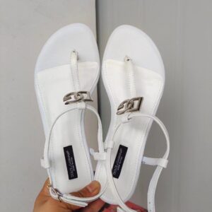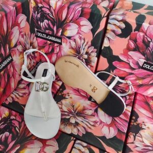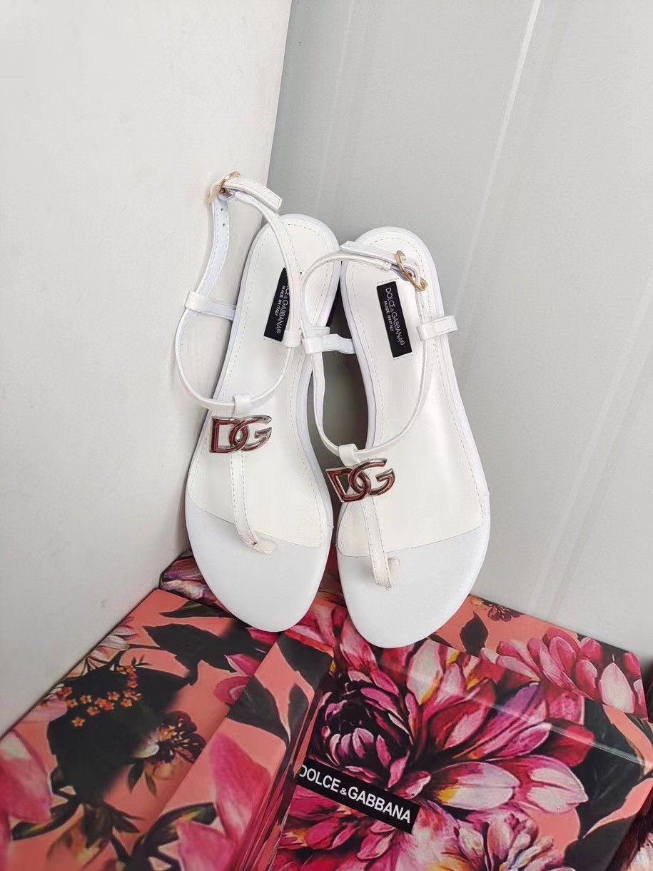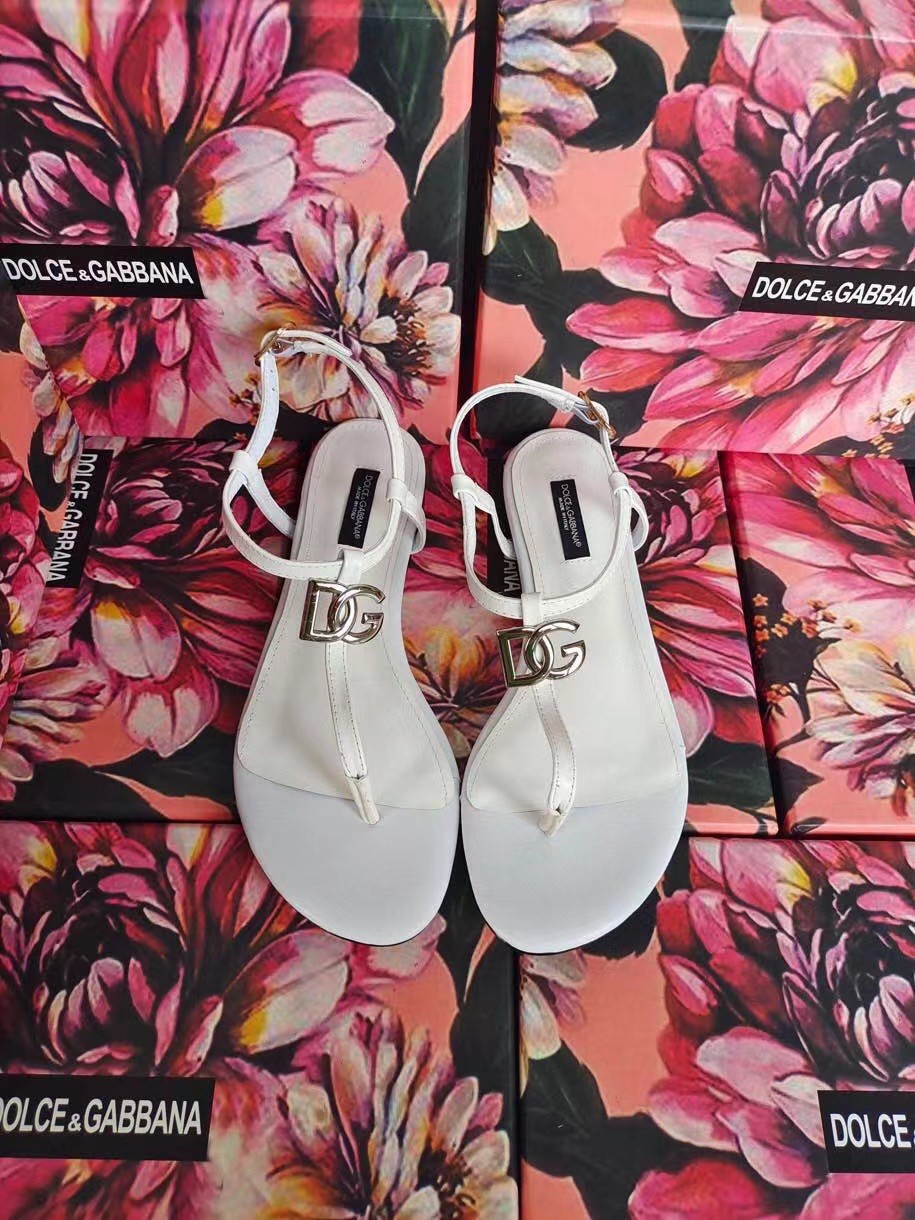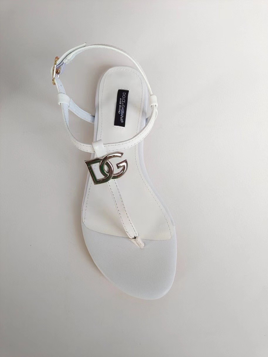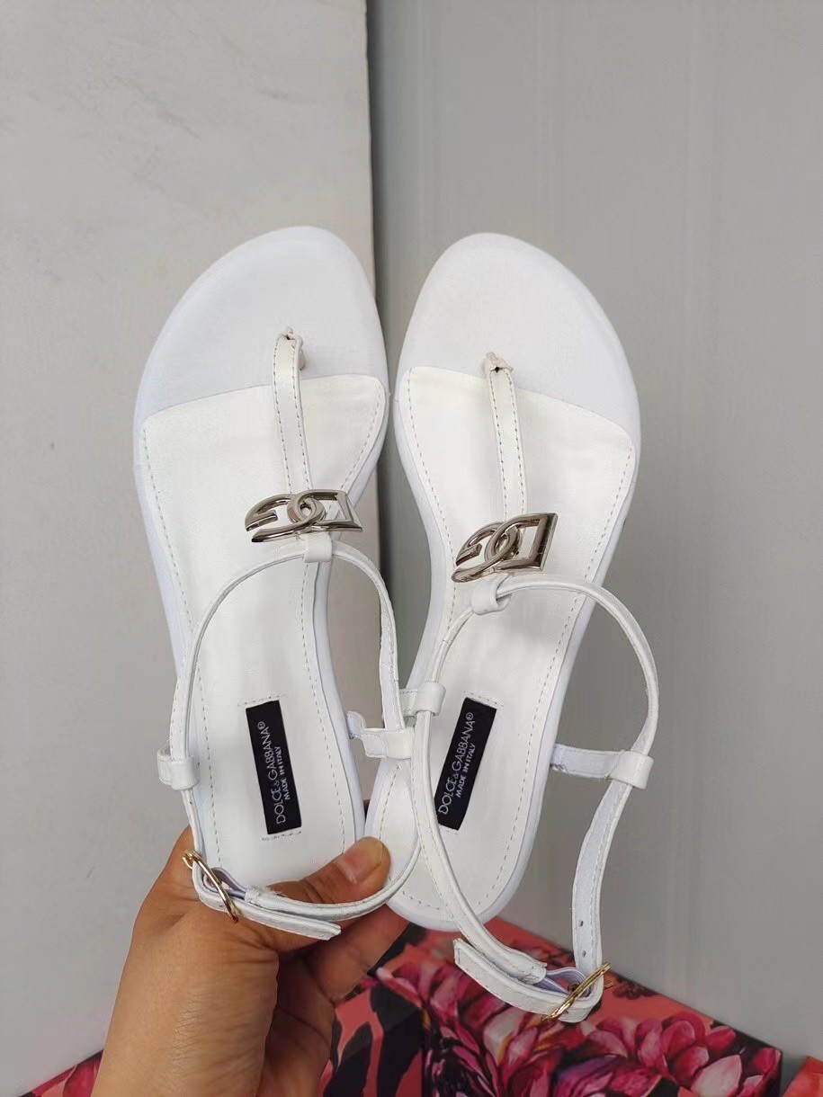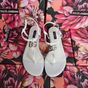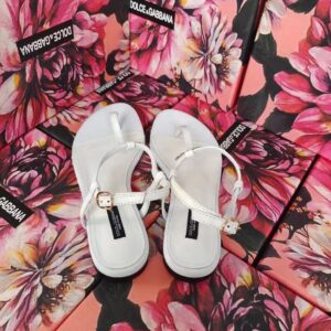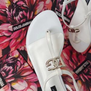 Dolce & Gabbana DG Thong Sandals In White Patent Leather
