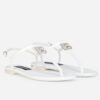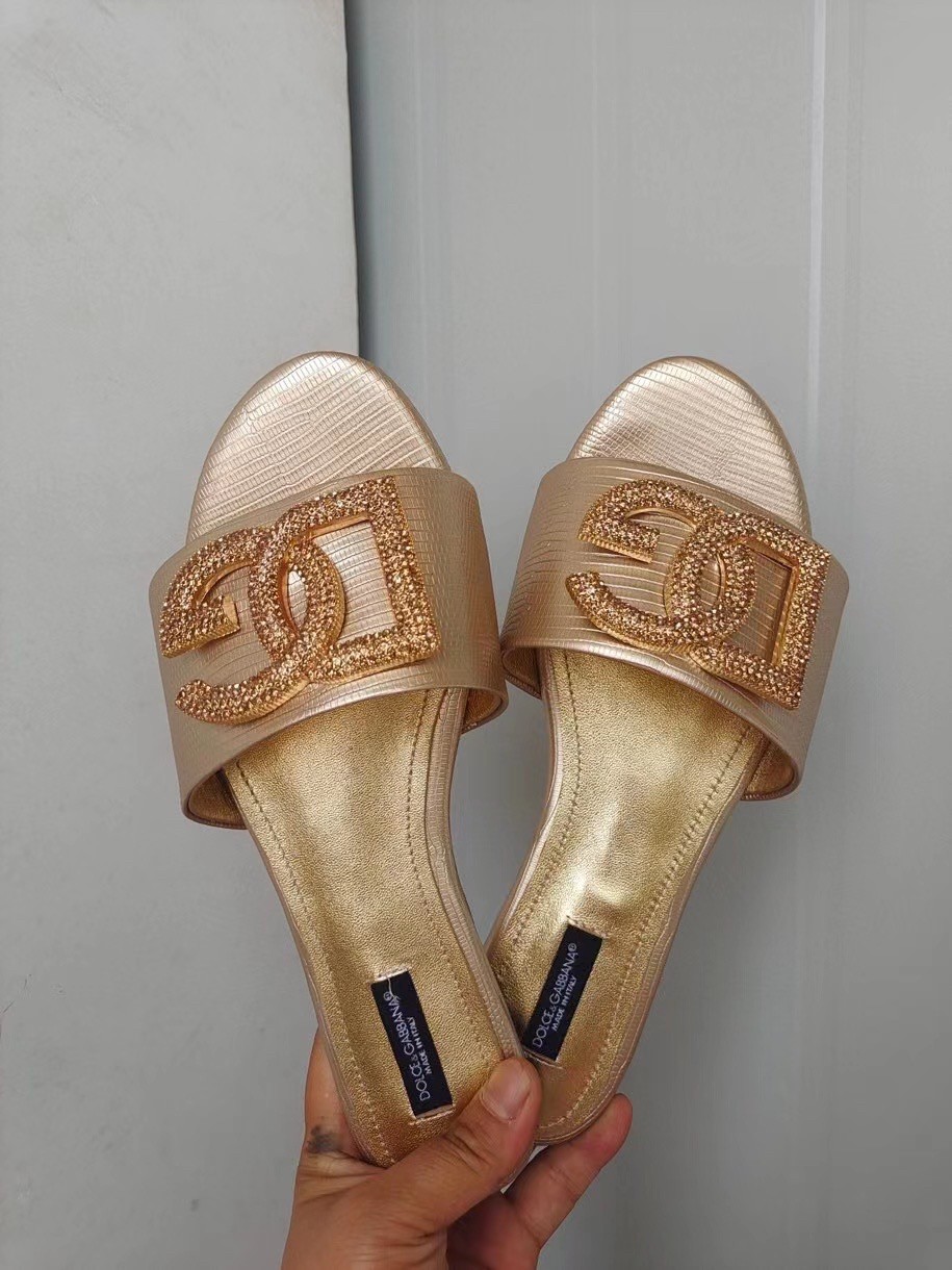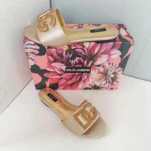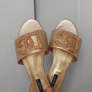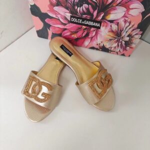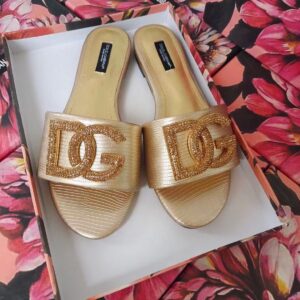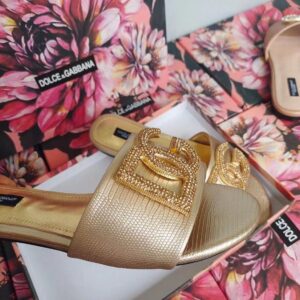 These Dolce & Gabbana’s new Bianca slides come in foiled iguana-print calfskin. Feminine and versatile, they feature the rhinestone-embellished DG logo.
