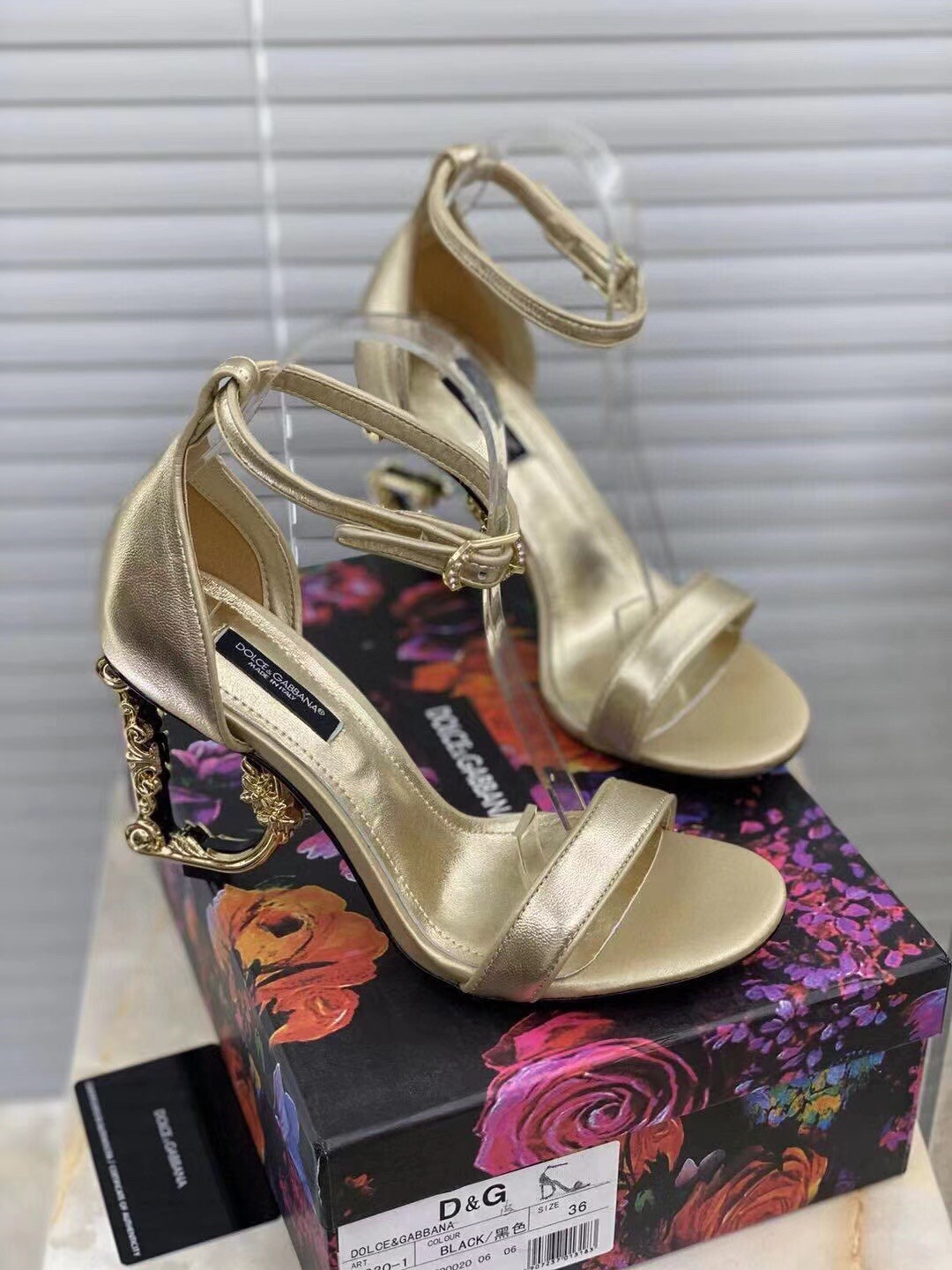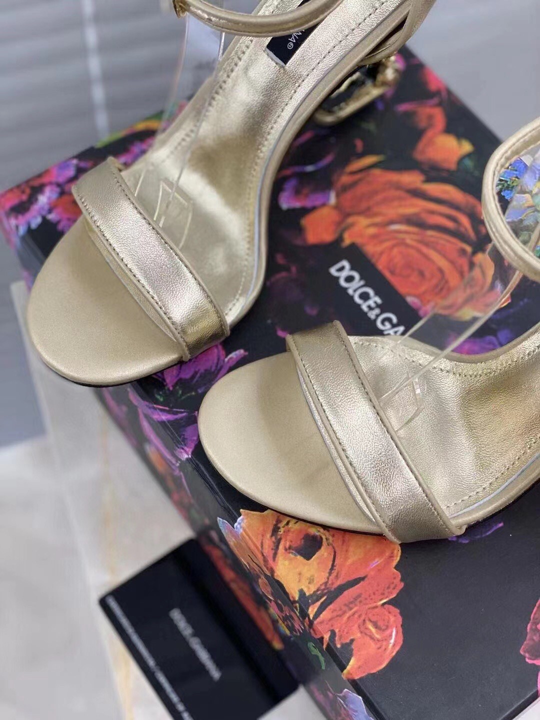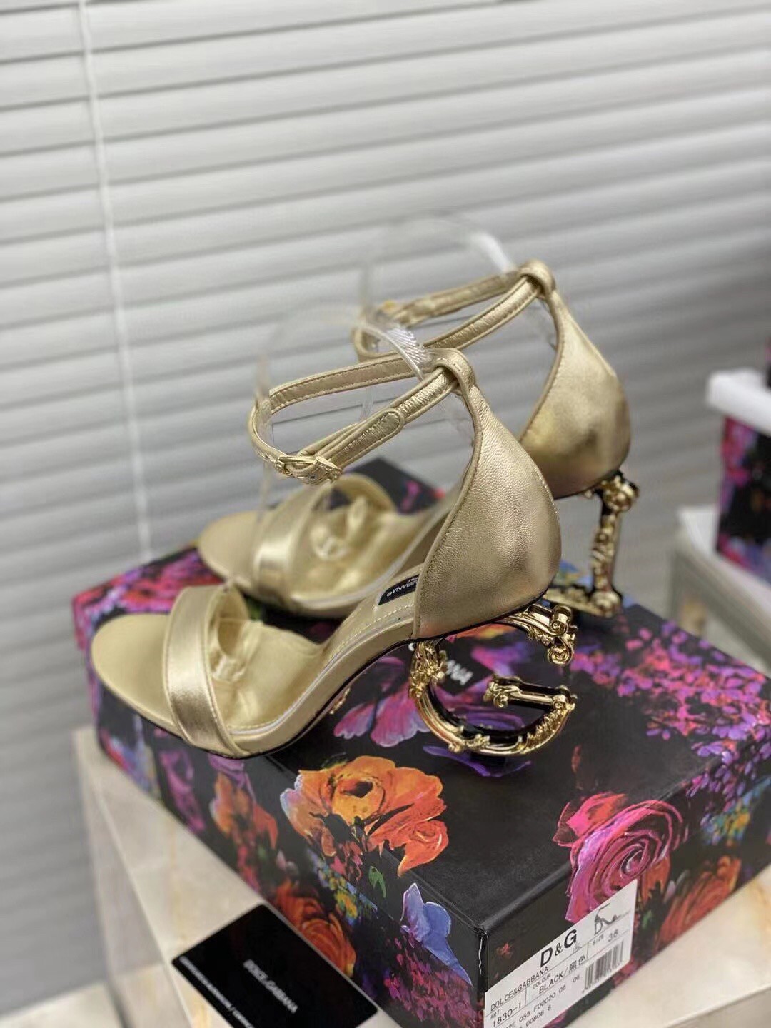 Dolce & Gabbana Gold Sandals with Baroque DG Heel
