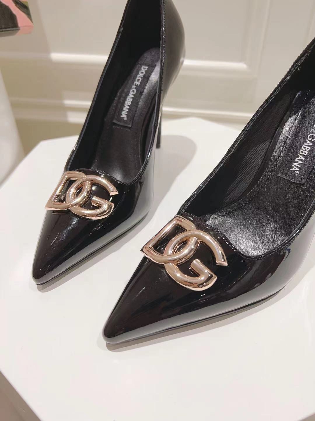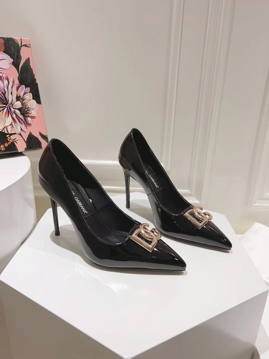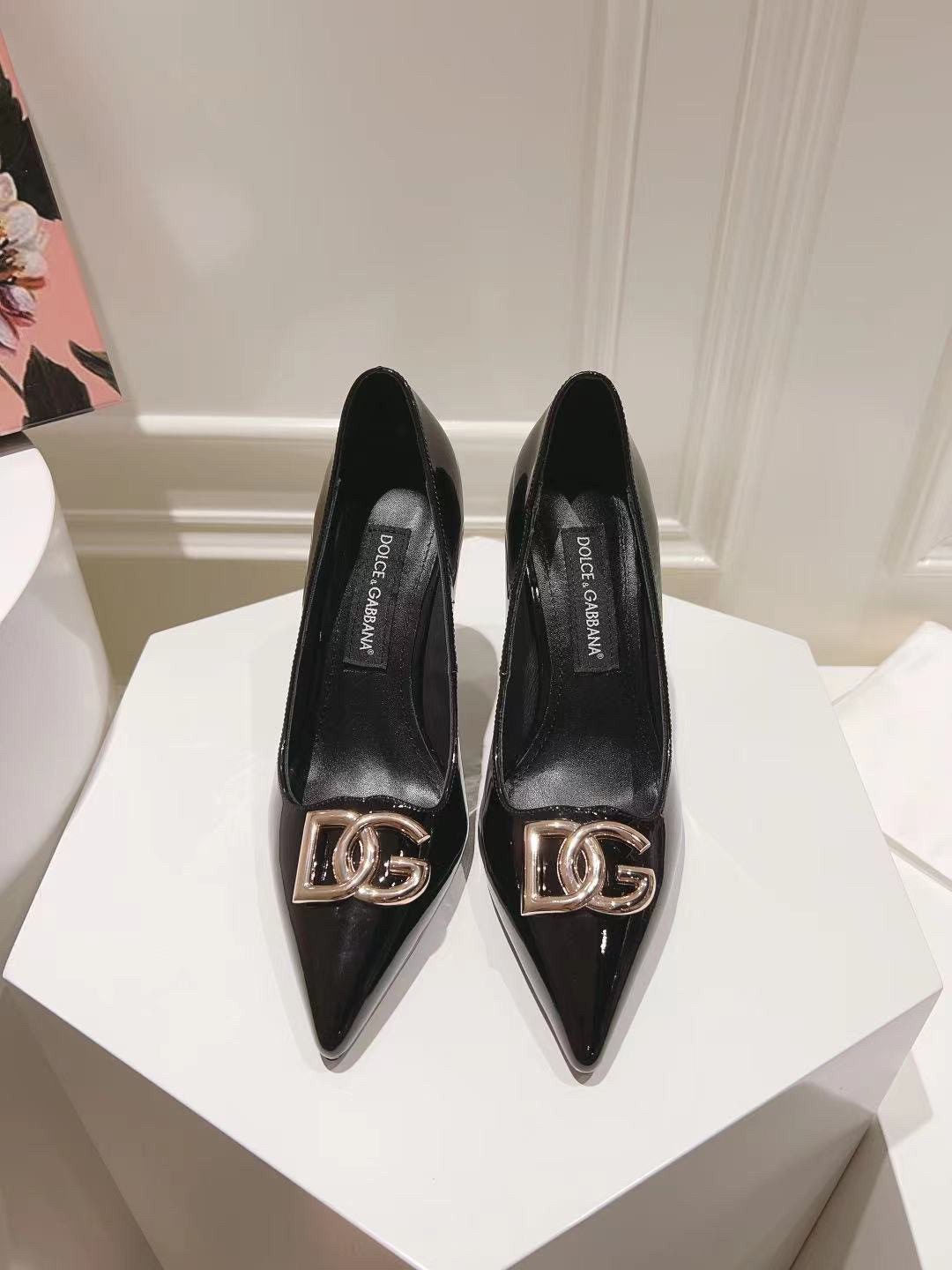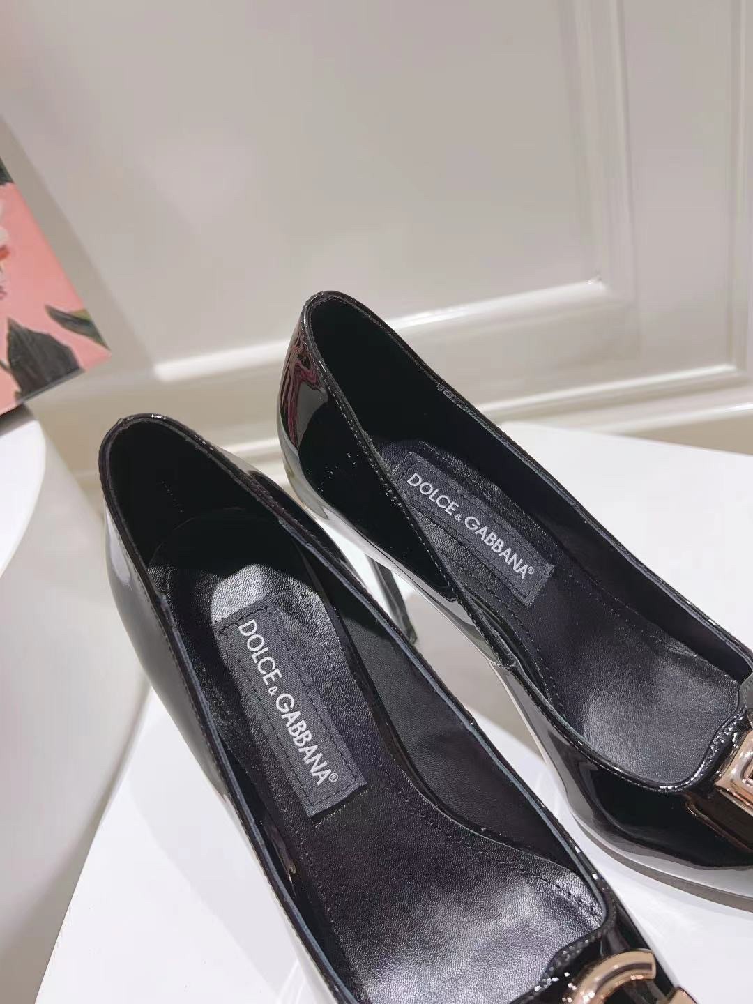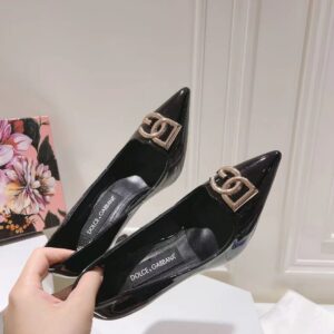 Dolce & Gabbana Lollo Pumps 90mm in Black Patent Leather