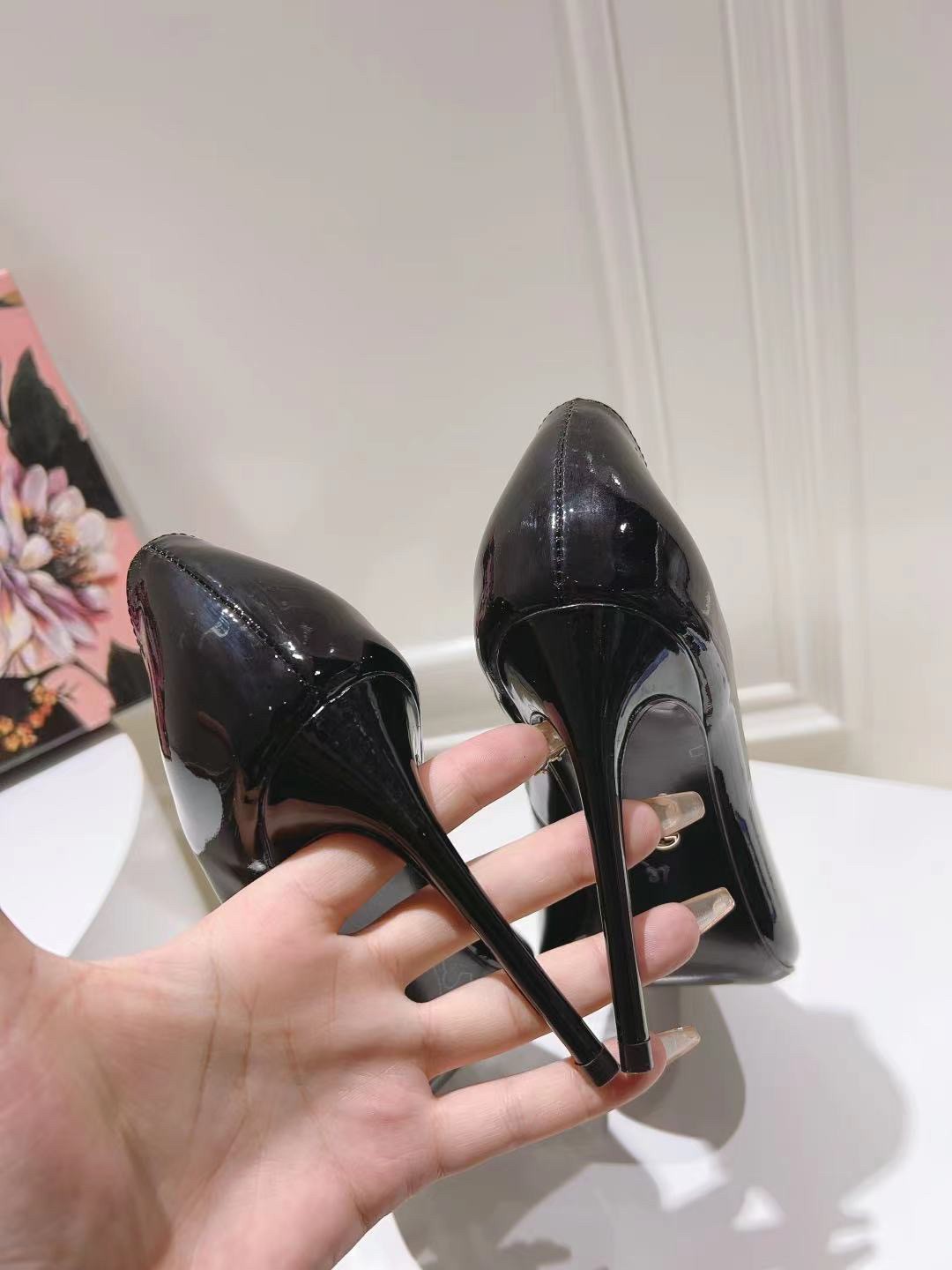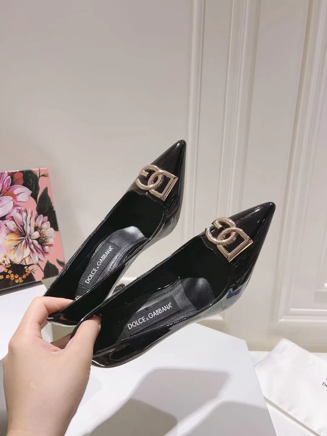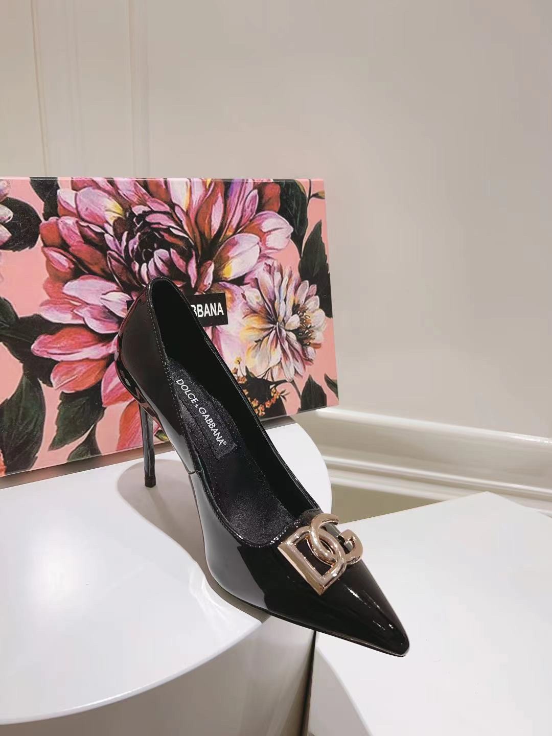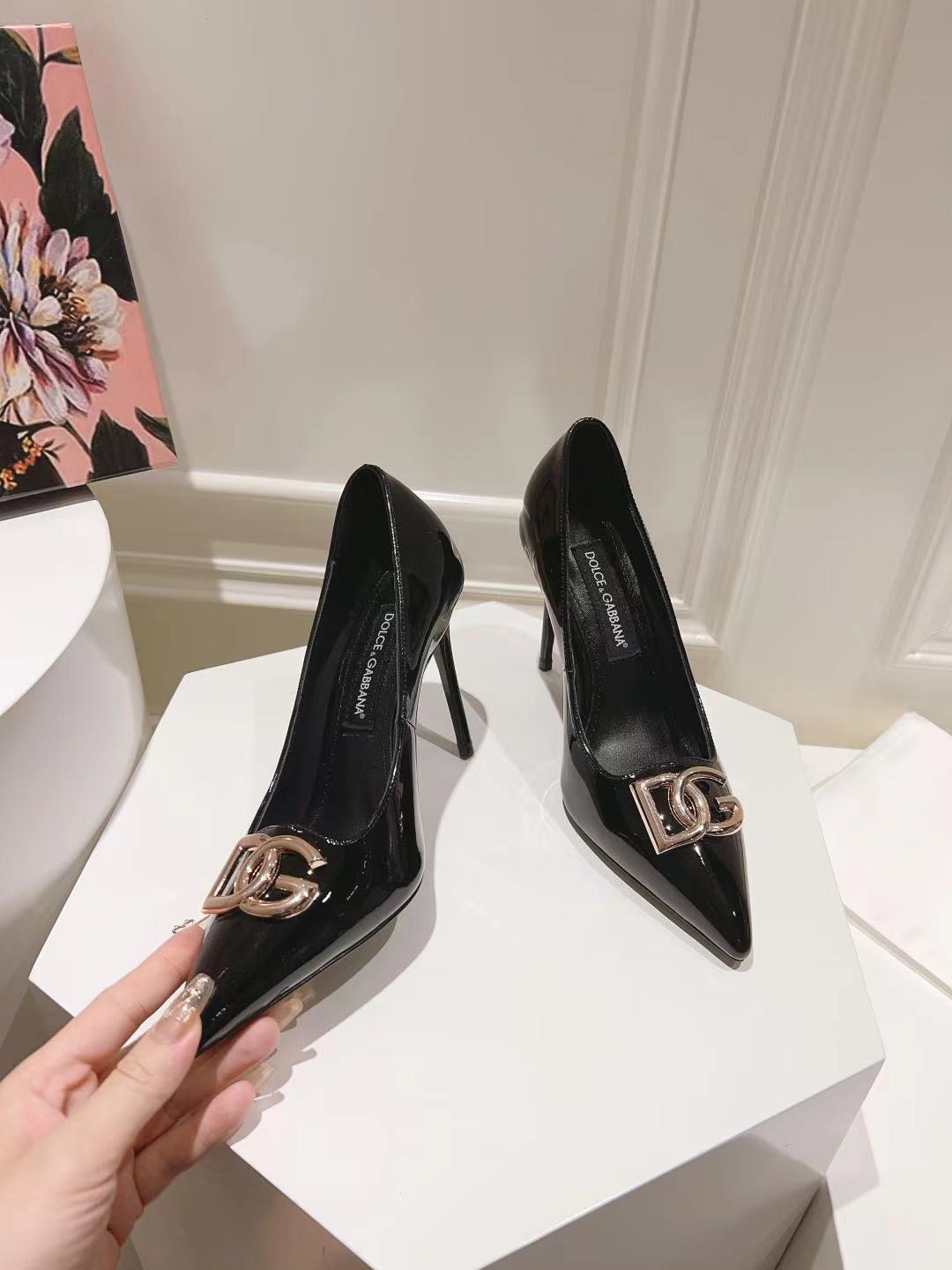 Dolce & Gabbana Lollo Pumps 90mm in Black Patent Leather