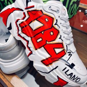 – Hand-painted calfskin nappa upper and the logo on the heel cup