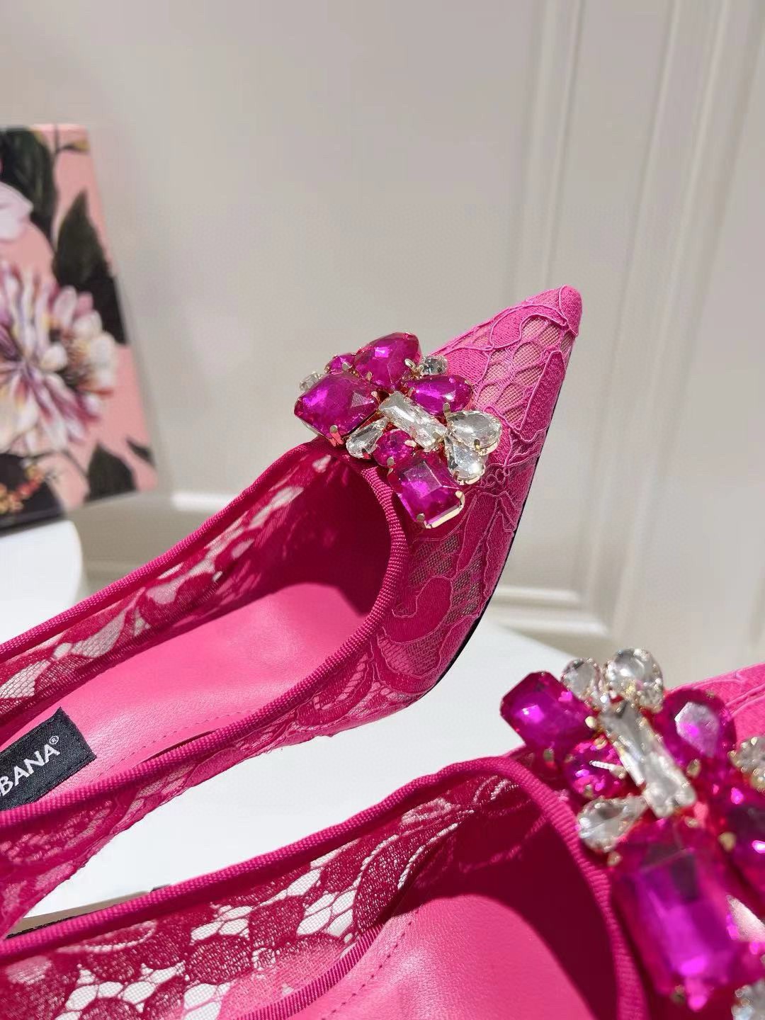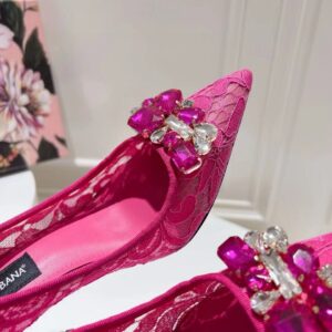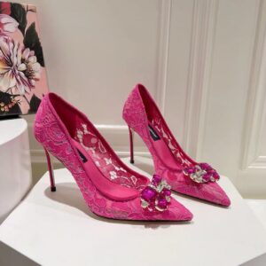 Featuring an iconic, timeless shape, these pumps from the Rainbow collection come in lurex lace. Feminine and elegant, they flaunt the iconic brooch made from colorful crystals that match the upper.