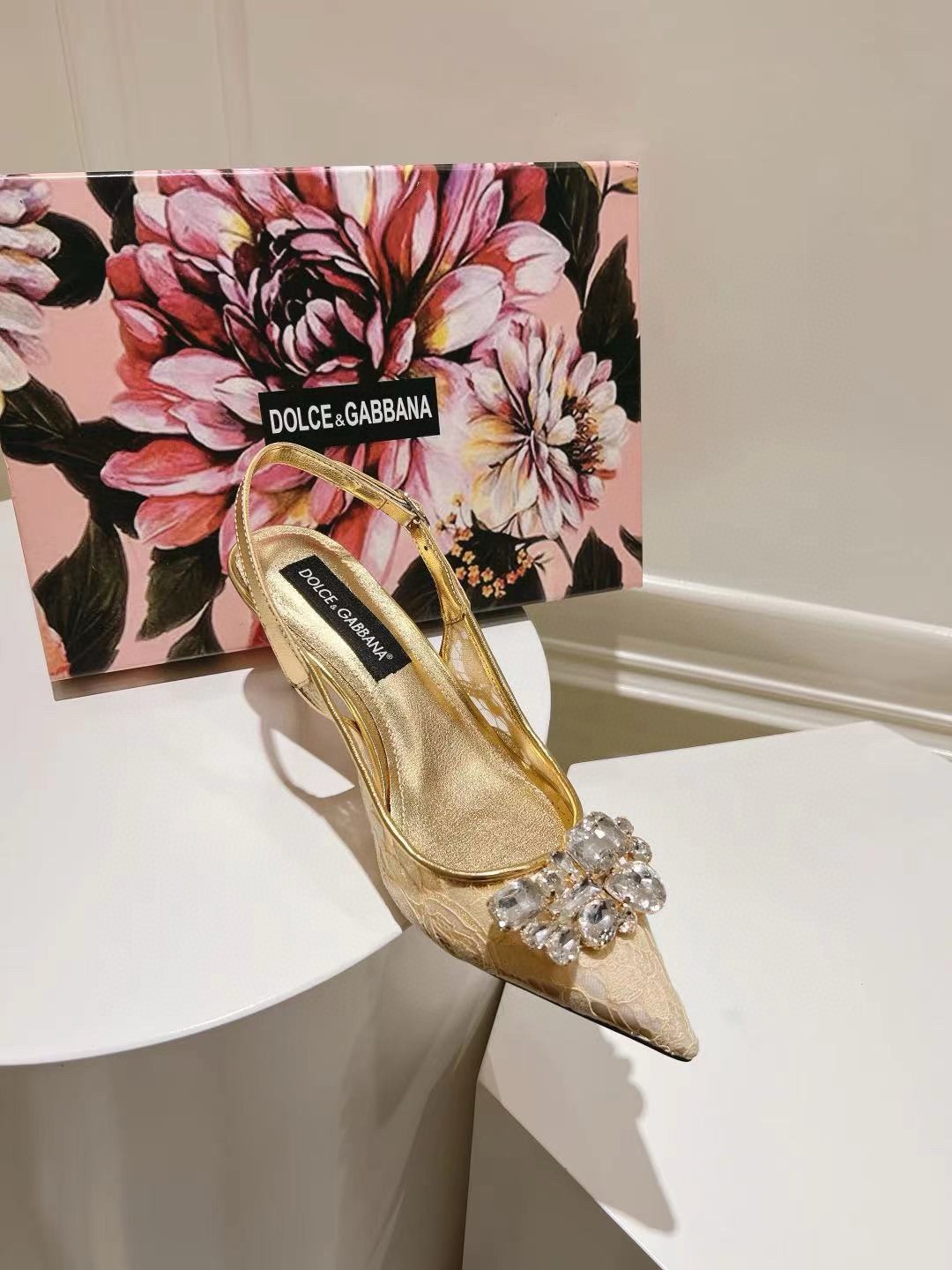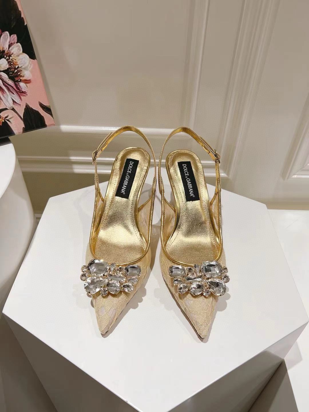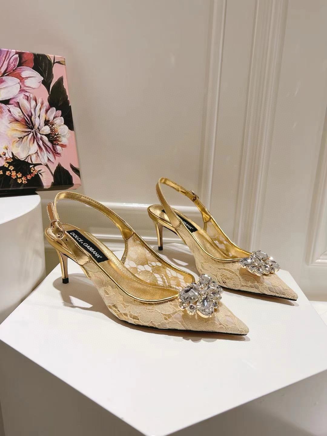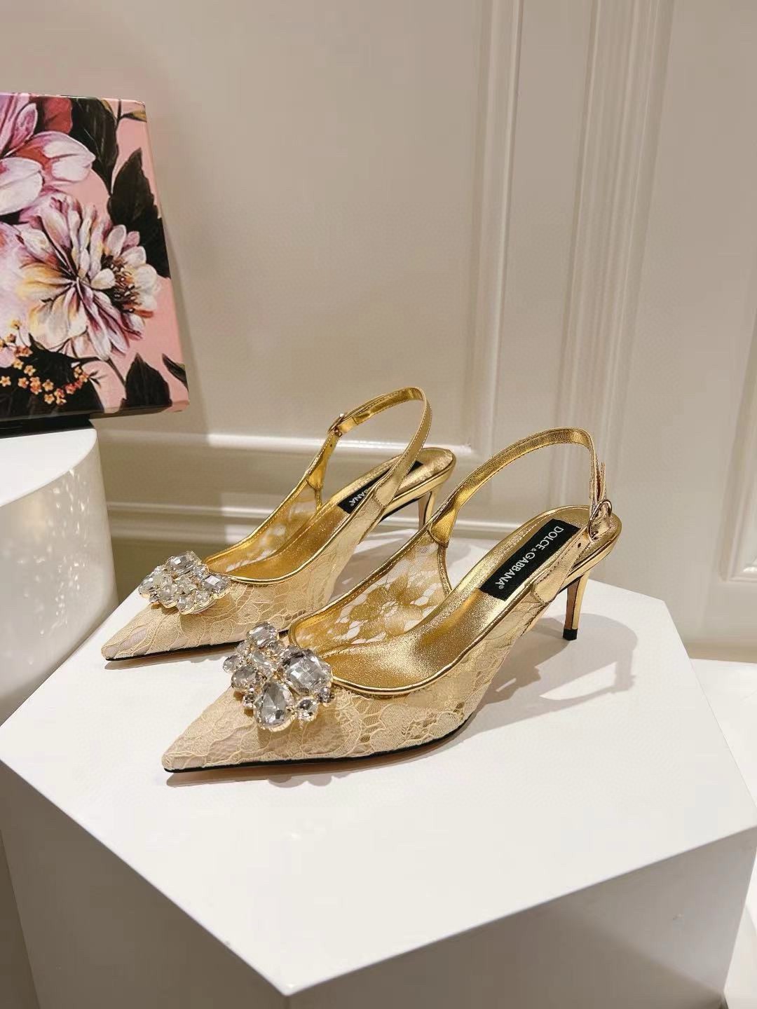 Dolce & Gabbana are known for bringing a romantic look and feel to their looks and these slingback pumps fit the bill! These lace pumps are designed with a slingback strap with buckle fastening, pointed-toe and a crystal-embellished detail on the upper.