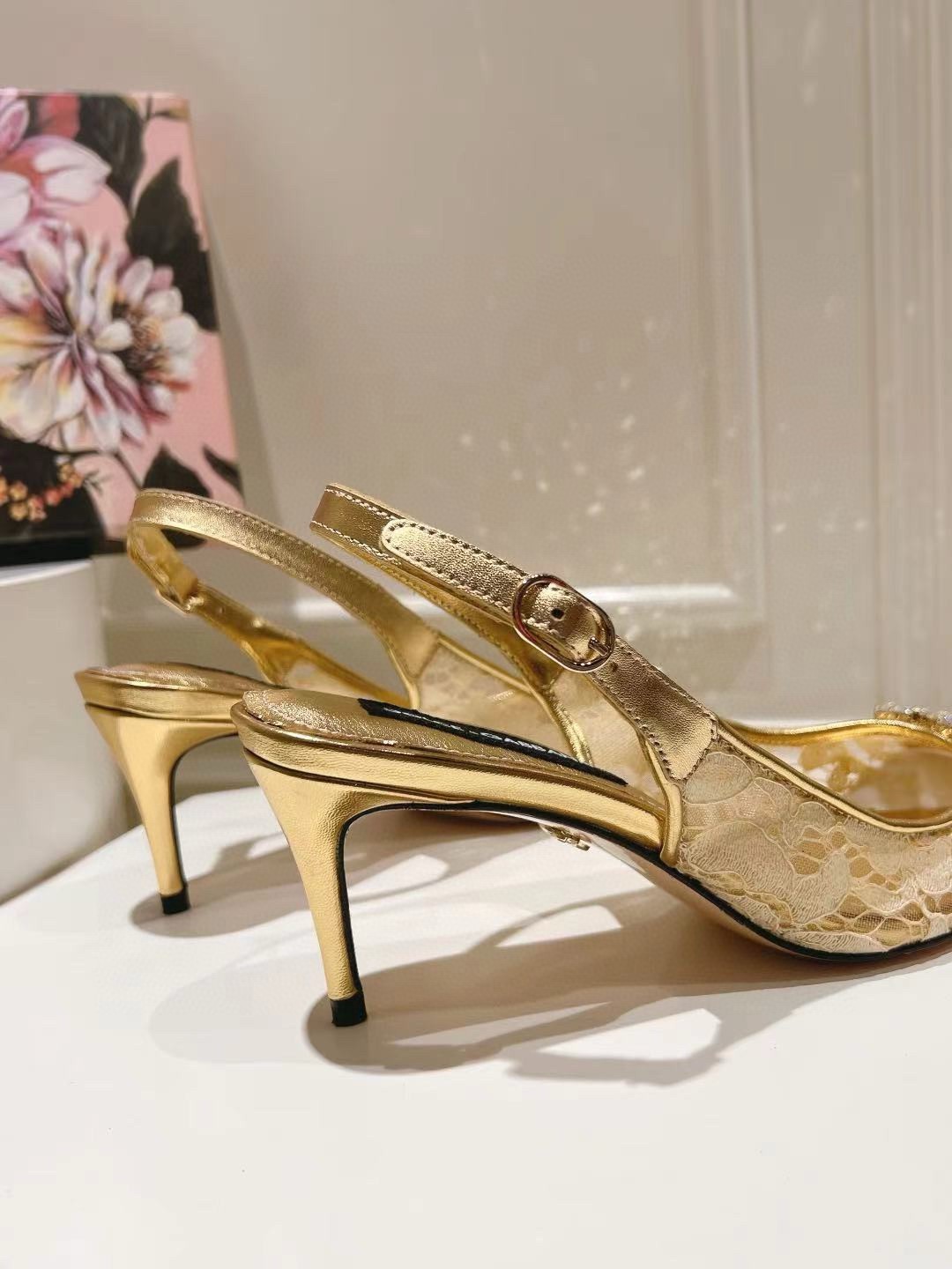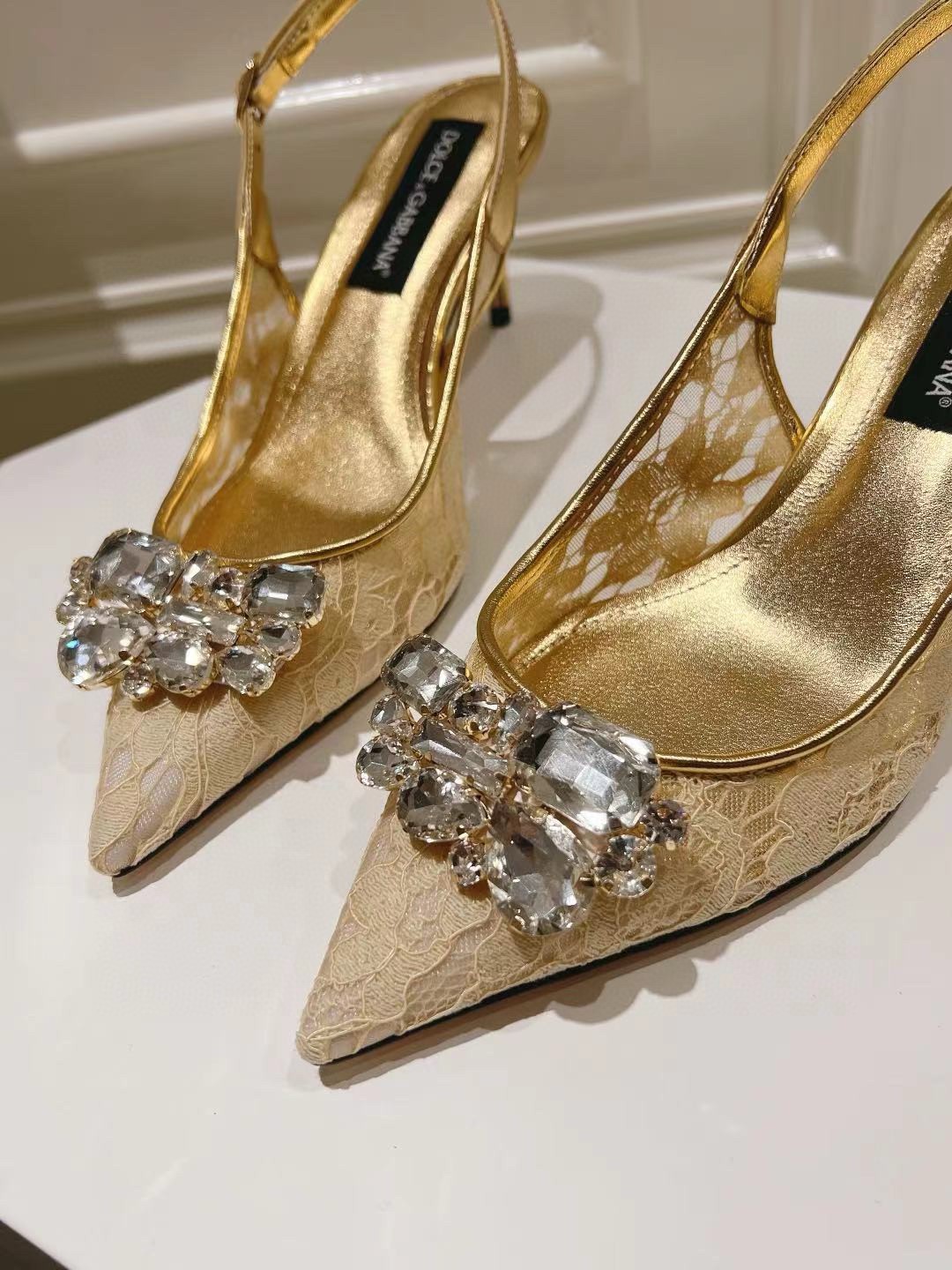 Dolce & Gabbana Rainbow Slingbacks Pumps 60mm in Gold Lace